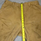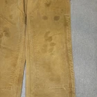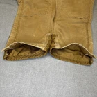 These Carhartt B157 BRN work pants are perfect for both casual and workwear occasions. Made of durable duck canvas material with a sherpa lining, they are heavyweight and perfect for winter, fall, and spring seasons. They come in a size 38 waist and hard to find 34 inseam. Pants are in excellent structural condition with no rips, tears or fraying. There are stains and fading on several spots on the pants, see photos for details. Fast one day handling. Shipped via USPS ground advantage. Unsatisfied for any reason? 30 day return policy offered with no questions asked. Thanks for looking!
