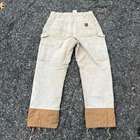 Vintage carhartt brown lined double knee work wear carpenter pants. Great pair. Measure 30x29 and a 9.25 leg opening. Please check measurements before purchasing. I do my best to show any flaws in pictures. Quick shipping! Bundles encouraged! @ants_haul on Instagram. 415!!!