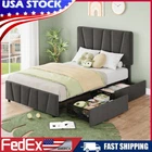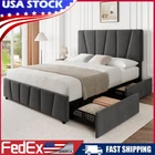 Jojoka Twin / Full / Queen Size Bed Frame with Storage Drawers and Adjustable Headboard, Upholstered Platform Bed Frame with Wooden Slats Support, No Box Spring Needed, Dark Grey 🛏️ Specifications: Color:Grey Material:Metal,MDF Board,Linen Size:Twin/Full/Queen Size Twin Size:75.4"L x 40.9"W x 45.7"H Full Size:78"L x 57.1"W x 45.7"H Queen Size:82.7"L x 63"W x 45.7"H Size of Drawers:27.6"L x 19.7"W x 5.5"H Max. Weight Capacity:800 lb Recommended Mattress: 8"-14" Special Feature:with Adjustable Upholstered Headboard,with Storage Drawers,Sturdy and Durable,Easy Assembly Please Note:Mattress not included! 🛏️ Features: 👍 【Storage Drawers】 This bed frame comes with spacious drawers at the bottom, providing ample storage space for bedding, seasonal clothing, and more. Each drawer is equipped with four wheels for easy sliding and a locking structure to secure the drawers in place. 👍 【Adjustable Headboard】 The headboard is adjustable in height, allowing you to match it with mattresses ranging from 8 to 14 inches, perfect for those who prefer higher mattresses. This customization ensures a perfect fit for your desired aesthetic and comfort. 👍 【Stylish Comfortable Headboard】 The headboard is crafted with luxurious velvet upholstery and features unique diagonal patterns, adding a touch of fashion to your bedroom decor. It also provides exceptional comfort, allowing you to lean back and enjoy reading or watching TV. 👍 【Sturdy Construction】 Constructed with high-quality metal and wood, our bed frame boasts a robust structure with ample support legs. It can withstand a maximum weight capacity of 800 pounds, ensuring durability for years to come. 👍 【Noise-Free】 By eliminating the need for a box spring and using wooden slats with soundproof cotton, our bed frame not only saves you costs but also prevents metal noises. You can enjoy a quiet and comfortable sleeping environment. 👍 【Easy Assembly】 All the parts and assembly instructions for this bed frame are packed in one package, making it easy for you to find any of the parts. Therefore, it is easy to assemble according to the clear assembly instructions. If you encounter any problems in the assembly process, please contact us promptly, we will reply in 24 hours. 📦 Package Included: Bed Frame Installation Tool User Manual 🏙️About us Worried about not finding your ideal furniture?Let's unlock all your worries!We are a large and competent e-commerce company with more than ten warehouses in the US.We have provided millions of products for our customers!Our brand is dedicated to providing our customers with high-quality, uniquely designed, and well-crafted products at affordable prices.We have many storage products as wardrobes, shoe cabinets, lockers, etc. We also have different furniture for you to choose from, giving you an ideal solution to decorate your home. 🚚 About Shipping After receiving payment, we will process your order within 1 working day (excluding weekends),and it will takes about 5-10 days to arrive. ☎️After Sales All items will be strictly inspected before being shipped,but we cannot determine what will happen to them during transportation.We hope that all our buyers can receive complete package.If you have any questions when receiving the items,please feel free to contact us at any time and we will do our best to solve the problem for you.