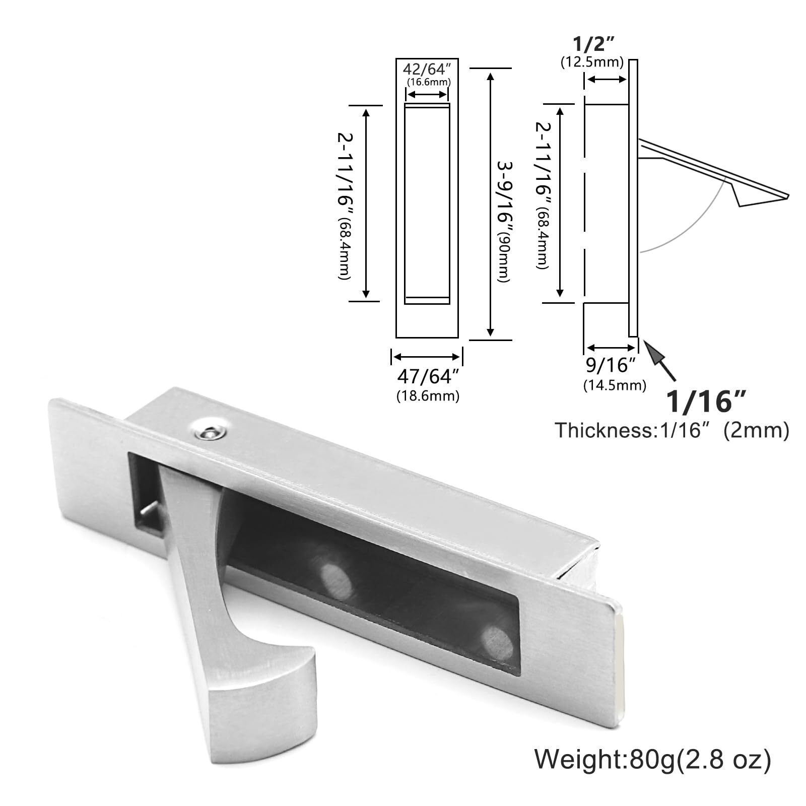 1 Pack Pocket Door Edge Pull Hidden Door Handle Flush Mount Pocket Door Features: 304 Stainless Steel Material: Solid piece with a satin finish, these handles are rust and weather-resistant, making them suitable for outdoor use Beautiful and Low Profile: With a smooth, clean, and elegant design, these pulls add a sophisticated touch Flush: The self-retracting mechanism ensures the lever closes flush with the door panel Hidden Screws: At 11/16 inch width, these pulls allow installation on both narrow and standard doors and cabinets, providing a clean, hidden pull look Solid Piece: Made from solid material, these pulls feature a unique design for maximum strength and durability Description: Pocket Door Pull Handle, Edge Pull, Professional Stainless steel 304, Flush Mount Door Pull for Pocket Sliding Door 🌻 If you need more quantity than shown available - just send me a message and I'll increase the purchased limit for you 🌻 SHIPPING We are always working hard to ensure your package arrives as soon as possible. Please understand that some factors like weather, high postal traffic, and the performance of shipping companies are outside of our control. We offer free shipping to the lower 48 states. We do not accept P.O. Boxes. Please provide a physical address. Thank you 🌻 TRANSLATE with x English Arabic Hebrew Polish Bulgarian Hindi Portuguese Catalan Hmong Daw Romanian Chinese Simplified Hungarian Russian Chinese Traditional Indonesian Slovak Czech Italian Slovenian Danish Japanese Spanish Dutch Klingon Swedish English Korean Thai Estonian Latvian Turkish Finnish Lithuanian Ukrainian French Malay Urdu German Maltese Vietnamese Greek Norwegian Welsh Haitian Creole Persian