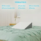 bed wedge promotes a better sleep position and provides ample support for your legs and lower back. Ergonomic Design: Our triangle pillow wedge is designed to elevate the upper or lower body to help improve sleeping position and provides you with maximum comfort. 2 Layers of Comfort Foam: wedge pillow has a layer of gel-infused memory foam inside, which provides comfort for hot sleepers and makes it feel cooler. And high-density premium foam base increases the durability of the pillow while providing ample support. Removable Cover: The soft breathable cover is machine washable and prevents too much heat from becoming trapped close to the skin. The cover's zipper allows sleepers to add or remove the inserts easily. Muti-Purpose: The wedge pillow can be used to comfortably sit up and watch television or read a book in bed. It's also ideal for elevating the legs for increased circulation. Perfect Size: The elevated pillow measures 24 inches wide and 24 inches long, and is available with 10 inch incline.