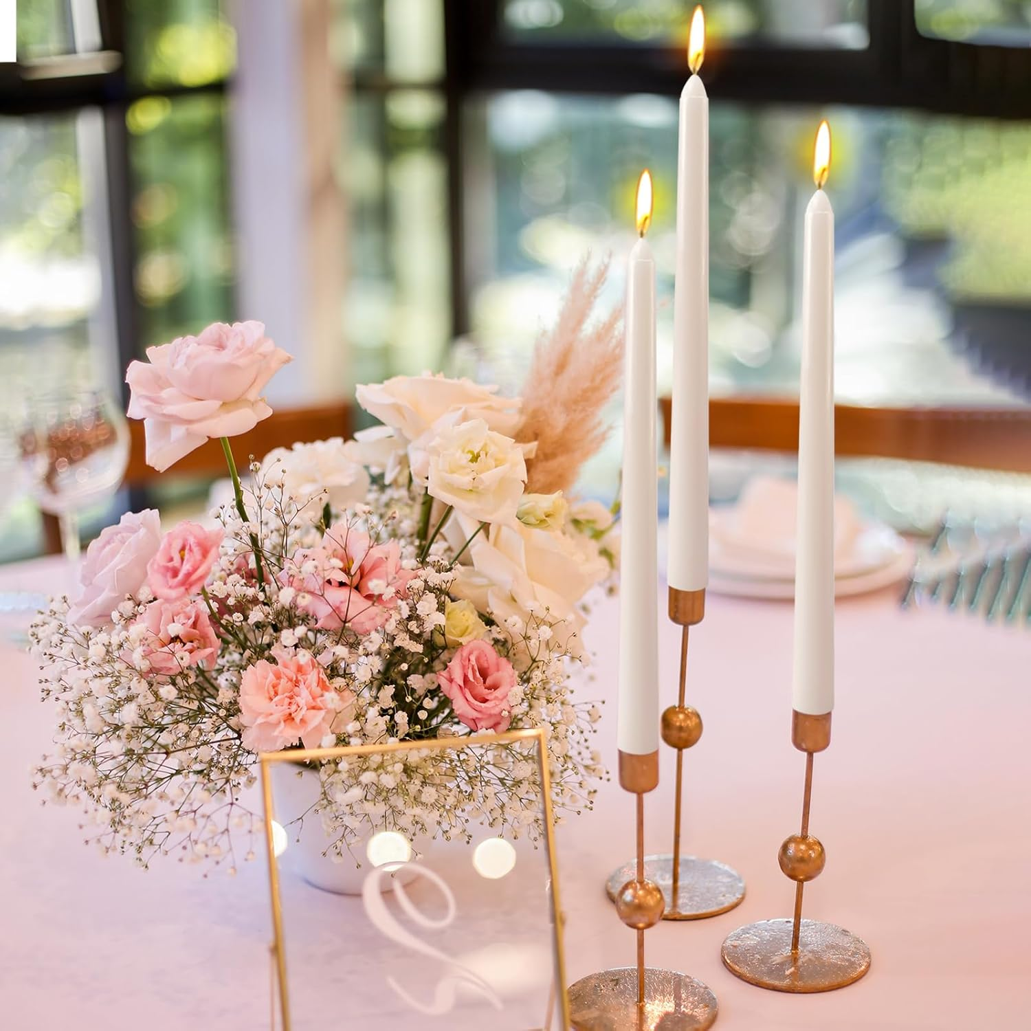 The set of taper candles includes 10 Light-Gray candlesticks, which is more cost-effective than a pack of 4 or 8. The taper candles are long and thin, which are cylindrical at the base and narrow on the top. They are 10 inches in lenghth with bottom diameters of 7/8 inches, enabling them to fit perfectly into taper candle holders of any specifications. These thin candles are clean burning and dripless. The candle wick is made of lead-free cotton. Each candle burns roughly 7-8 hours. Notice: Even dripless or drip resistant candles may drip! Dripless candles require ideal burning conditions in order to avoid dripping. The taper candles could offer a bit more style and enhance a cozy atmosphere of your home. These aroma free tall candles are ideal for weddings ceremonies, religious events, sweet sixteens, restaurants, spring decoration, and daily home decor. Our candle set ships in protective packaging ready for gifting and easy to storage. Key Features: Paraffin Wax + Soy Wax + Beeswax 100% Lead-free Cotton Wicks Light-Gray and Unscented 7-8 Hour Burn Time Candle Candle Burning Tips Cut each wick to 1/4" before initial lighting Mount candles on a level surface, ensure that the candles stand up straight Keep away from draft or anything that might sway the flame in any direction If a candle starts to drip, extinguish the flame, let wax harden, then re-light Safety Warning Keep burning candles away from flammable objects Depending on the dimensions of your room, be aware how tall you want your candles to be. Never burn any candle unattended