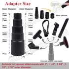 Vacuum attachments are suitable for Most Vaccum (not all) with 1 7/8 inch (47.5mm), 1 3/8 inch (35mm), 1 1/4 inch(32mm) and 1 inch(25.4mm) inner diameter. Not Fit For 2 1/4 inch,2 1/2 inner diameter vacuum cleaner and vacuum attachments. The 3 vacuum extension wand and the vacuum attachements are held together by friction, and the small end of our vacuum extension wand can also be attached to our crevice tool, upholstery tool attachment and brush. And the length of the extension wand is 14.6". So great tool to help cleaning high and low places. The vacuum attachements set includes 5 layers vacuum attachment adapter,5 vacuum extension wand, 1 1/4 inch(1.25") horse hair vacuum attachment, 1 1/4 inch crevice tool, 1 1/4 inch flexible crevice tool, 1 1/4 inch upholstery tool attachment, 1 1/4 inch utility nozzle with removable plastic brush, 1 1/4 inch brush & nozzle combination tool. Universal Vacuum attachments - with Vac vaccum with 1 7/8",1 3/8", 1 1/4", 1" diameter accessories. 5 Layer Universal Vacuum Adapter - Outer diameter of the 5 layers adapter is 23mm, 27mm, 32mm, 35mm, 40mm, 50mm. Suitable for vac attachment with 1"(25.4mm), 1 1/4'' (32mm), 1 3/8'' (35mm), 1 1/2''(39mm), 1 7/8"(49mm) inner diameter. The vacuum adapter can be easily cut into 5 size connector for your need. 1 1/4 Vacuum Attachments & Brushes - Horse hair vacuum attachment is great for hard surfaces such as counter tops, dust tables, vertical blinds, air and heating vents etc. Removable Utility Nozzle, Brush & Nozzle combination Tool and Upholstery Tool Brush are suitable for soft or uneven surfaces without damaging the object such as curtains, sofas, lighting equipment, pet hair, etc. Flexible Crevice Tool - Flat head suction design is effective for small fine particles and dust in narrow gaps and small corner such as corners of sofas, dryer vent,keyboard, car etc. Make your cleaning work more convenience. Vacuum Extension Wand - The outside diameter of the small end is 1.22"(31mm), so the inner diameter of the vacuum attachments you want to connect to the small end should be 1.25"(32mm). The inner diameter of the large end is 1.25" (32mm), the outer diameter is about 1.34" (34mm). So the outside diameter of the vacuum attachments you want to attached with the large end should be 1.22" (31mm) or 1.21 (30.7mm), inner diameter should be 1.37"(35mm).