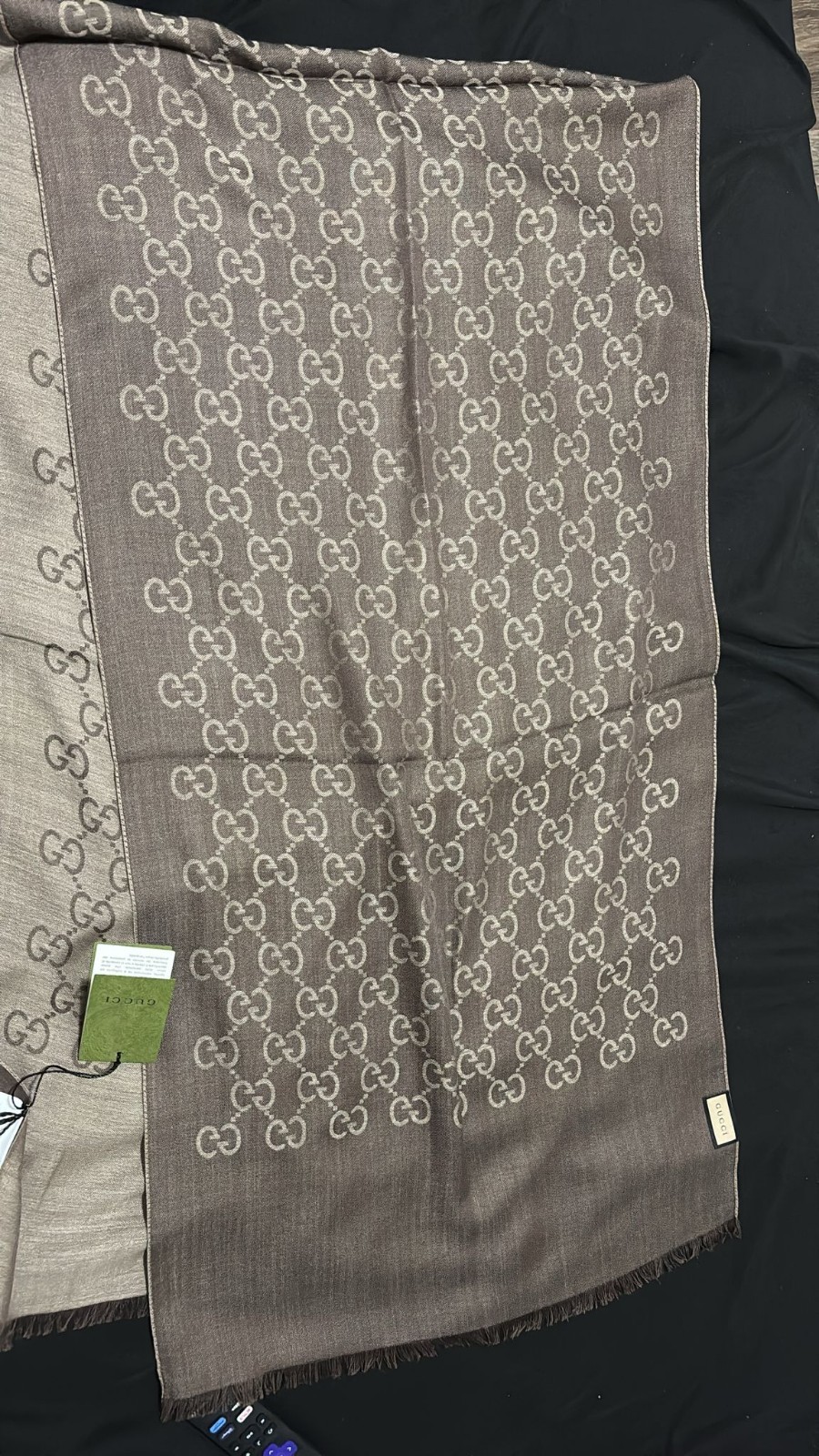 NEW 100% Authentic Gucci GG WEB 45x180 Wool Silk Reversible shawl scarf Grey