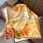 $ 9.18100% Silk Scarf Women Vintage Blue Leaves Kerchief Square Bandana Wrap 68*68cm