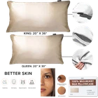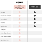 Sleeping constitutes one-third of our lives, meaning that our skin and hair spend a significant amount of time in contact with our pillowcases. Our pillowcase, made from 100% mulberry silk, is specifically designed to offer a luxurious sleeping experience while providing beauty benefits. Material Content: The pillowcase is crafted entirely from mulberry silk. Disclaimer: Please note that the digital image displayed aims to represent the most accurate color possible. However, due to variations in phone screens and computer monitors, there may be slight color differences between the actual product and what appears on your screen. FAQs: What makes the NIGHT 100% Mulberry Silk Pillowcase exceptional? This pillowcase is not your average one. It is manufactured using 100% 22 momme mulberry silk, ensuring the highest quality fabric for an optimal sleep surface that maximizes beauty benefits. Momme is a measurement that determines the weight of silk, similar to how thread count is used for cotton. By using 22 momme silk, we offer a top-quality product. Silk is naturally nonabsorbent, which means it won't deplete your skin and hair of essential oils, thus helping to keep them moisturized. This, in turn, reduces hair breakage and minimizes the formation of wrinkles. Silk is also naturally hypoallergenic, preventing the accumulation of dust mites and allergens. Additionally, we've added a hidden zipper to enhance the cleanliness of your sleep surface, reducing the occurrence of overnight breakouts and irritations caused by allergens. What are the benefits of sleeping on a silk pillowcase? In short: improved hair, skin, and sleep quality. Sleeping on a silk pillowcase offers several benefits, including supporting deep and restorative sleep through temperature regulation, as well as promoting clear skin and healthy hair. Silk has long been regarded as a beauty secret. How does silk benefit my skin? Silk helps reduce sleep lines, wrinkles, and skin irritations by providing a smooth surface that allows your skin to glide gently. Unlike other materials, silk does not absorb moisture, ensuring your skin stays hydrated and allowing any night creams you use to be fully effective on your skin instead of being absorbed by the pillowcase. Moreover, silk is naturally hypoallergenic and resistant to the accumulation of dust mites, mold, and mildew, which further aids in preventing breakouts and blemishes. Silk's natural thermoregulation properties also enable your skin to breathe and keep you cool throughout the night. How does silk benefit my hair? Silk creates a smooth surface for your hair to glide across, minimizing friction and preventing pulling and tugging on delicate hair strands while you sleep. This helps prevent hair breakage, reduces frizz, maintains hairstyles, and extends the life of blowouts. Silk's nonabsorbent and breathable nature preserves the natural moisture levels of your hair, so you wake up with smooth and silky locks in the morning. Is the 100% Mulberry Silk Pillowcase difficult to care for? No, we want to make your life easier! You can either machine wash the pillowcase on a gentle, cold setting or hand wash it. Afterward, air dry it and avoid tumble drying. If needed, you can iron or steam it on a low heating setting. Bleaching should be avoided. Although our pillowcases arrive clean and ready for use, we recommend laundering them before sleeping on them to ensure compatibility with your specific detergent. Does this pillowcase cause overheating during sleep? No! The Night 100% mulberry silk pillowcase is designed to provide optimal breathability, ensuring you stay cool and comfortable throughout the night. What are the dimensions of the 100% Mulberry Silk Pillowcase? The standard/queen size measures