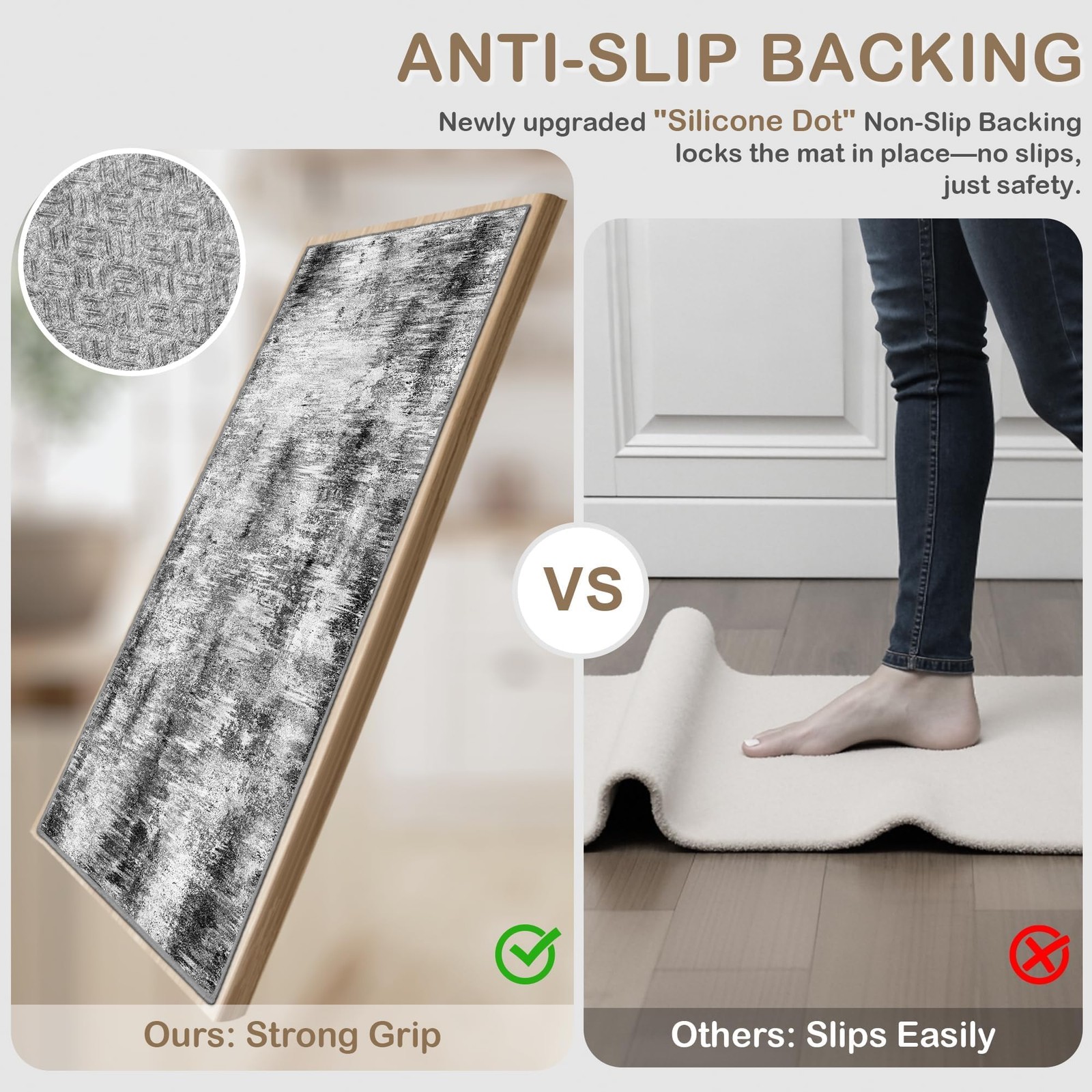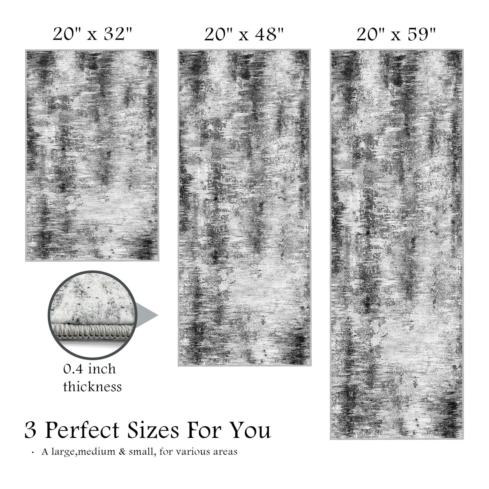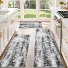 Kitchen Rugs Sets of 3 【100% Non-Slip Silicone Backing】: These 100% anti-slip kitchen runner rugs feature a premium Silicone Dot backing, ensuring stability on tile, hardwood, and laminate floors. Even after repeated washing, the silicone dots maintain strong grip, keeping the kitchen rugs firmly in place whether in wet, greasy, or high-traffic areas like the kitchen sink, stove, or laundry. Ideal for homes with kids, pets, or elderly family members. 【Abstract 3-Piece Kitchen Rugs Sets】: Enhance your space with this modern kitchen rugs set featuring an artistic abstract design. The kitchen runner rugs includes three sizes (20"x32", 20"x48", 20"x59") to fit various areas like kitchen islands, stoves countertops, and entryways. Combining style and comfort, these 3 piece kitchen floor mat bring a sleek, contemporary touch to your home. 【Soft, Low-Pile & Durable】: Crafted from soft yet durable materials, these kitchen mats for floor provide comfort underfoot while withstanding daily wear. The kitchen mats 0.4" low-pile design ensures a sleek look, allows doors to open smoothly, and helps prevent tripping hazards. Designed for high-traffic areas, these area rugs for kitchen floor maintain their shape and color even after frequent use. 【Easy to Maintain】: Enjoy effortless cleaning with this machine washable kitchen rugs Runner Set. Simply toss the kitchen rugs in the washing machine, vacuum, or wipe clean to remove stains and spills. The fade-resistant fabric keeps them looking fresh, making these hallway runner rug carpet perfect for busy households. (Note: Slight creases may appear upon arrival. Roll in the opposite direction and let it sit for a day to flatten.) 【Versatile for Multiple Uses】: Beyond the kitchen, this 3-piece rug set is ideal for laundry rooms, entryways, bathrooms, and bedrooms. Whether used as a kitchen runner, indoor doormat, or bathroom rug, these stylish and functional mats provide comfort and floor protection throughout your home. An excellent gift for housewarmings, Christmas, New Year or special occasions.