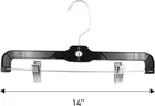 Dimensions: 14" Color: Black Holds up to 6 pounds Case of 100 Use the Economy Plastic Skirt and Pant Hangers in Black for an affordable alternative to our regular skirt and pant hangers. These economy hangers have the same great design, shape, and dimensions of our regular hangers at a more affordable price! Featuring anchored chrome swivel hooks, hang bars, and padded metal clips, these hangers are a great addition to your retail displays. The 14" economy skirt and pant hanger will hold up to 6lbs which makes them perfect for lightweight clothing and everyday use. Sold in cases of 100 Shipping We ship primarily via FedEx, UPS, USPS, etc. to the Continental US. At times other private shipping companies may used as well. Most orders are shipped within 24 hours of receipt of Payment. (excluding weekends and holidays.) A physical address is needed for all orders as we are unable to deliver to PO boxes. Items will be shipped from one of the following states: Georgia, Louisiana, Missouri, Nevada or Pennsylvania. Typically orders arrive within 1-5 business days of receipt of payment. Shipping insurance is included for Loss/Damage protection on ALL orders. Please check your shipping address carefully prior to check out. Orders placed on weekend may be processed immediately and will be shipped on the following Monday. Notification of shipment with tracking number will be sent to buyers within 24 hours of shipping.
