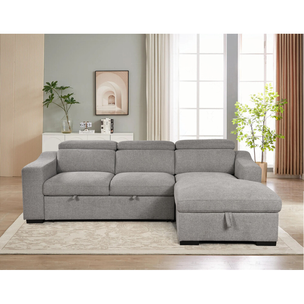 【Convertible L-shaped design】When you nap or watch TV, your feet can also enjoy ultimate relaxation due to this L-shaped design.You won't need any other ottoman! perfectly matching various scenes and usage needs. 【Durable and Comfortable Materials】Equipped with soft fabric,solid wooden frame, high density sponge and springs,this sectional sofa can easily support 2100 lbs, providing a soft and comfortable experience and fast rebound, can be used for a long time without deformation, and you will not feel tired even after sitting for extended periods of time. 【Multifunction Sofabed】Sofa bed with Wirelessly Charged & cup holder & storage Sofa Chaise, give you extra storage space,storage chaise offer convenient space for putting small items like your blankets, magazines, pillows,well save your space and keep the living room clean. 【Adjustable Headrest】Functional headrests 6 Clicks Headrests bring you all kinds of comfort and support, comfortable waist pillow Just to give you a better feeling; Sleeper bed mechanism ; Strong ,safe and easily pull out ; As a couch, it fits in home office/guest room perfectly. Pull out sofa bed There is hidden bed under the sofa, it can be easily changed the sofa into a sleeper bed, easy to pull out and push in by the straps.It provides additional space for guests or sleepovers to sit or sleep, very comfortable to sleep on everyday as a bed On Mar 7, 2025 at 02:47:49 PST, seller added the following information: