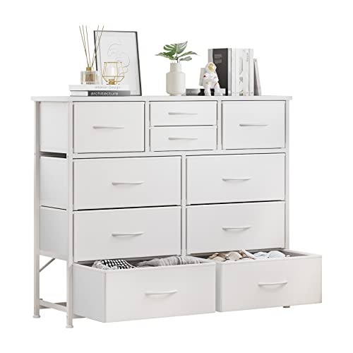 Return Policy Fast Delivery Trusted seller 10-Drawer Dresser, Fabric Storage Dressers Drawers for Bedroom, Hallway, Nursery, Closets, Steel Frame, Wood Top, Easy Pull Handle (White) Product Description [ Dimension ] 39“W x 11.8”D x 39.4“H; Dimension of large drawer: 18.1”L x 11.8“D x 8.7”H; Dimension of medium drawer: 11.3“L x 11.8”D x 8.7“H; Dimension of small drawer: 11.8”L x 11.8“D x 4.1”H [ Small Deep Drawers Design ] The difference between the Drawer Dresser and other products is that the drawers dresser with 2 small deep drawers design, which can separate storage panties and sock or other things [ Large Storage Space ] 10-drawer dresser that is including 6 large deep drawers, 2 medium deep drawers and 2 small deep drawers, which can meet your storage needed; All the drawers with handle, which is easy to pull-out the drawers, very convenient [ Sturdy and Durable ] The drawers with strong steel frame, high-grade fabric and waterproof wood top, with foot pad to make sure the dresser drawers stable; the dresser drawer can be use for years indoor; The wooden top is great for your handbag, caps, keys, umbrella, earphone, keeping them in your reach; Can also place plants, vase and cosmetic storage boxes [ Keep Room Tidy ] The storage dresser take full advantage of vertical space, when your messy clothes now to go, stack up and put it into the dresser drawers - wver clutter, tidy soon; Give you a comfortable environment and bright mood Shipping Returns Payment Shipping Shipping is FREE to all addresses other than APO/PO boxes in the lower 48 states. All our stock ships from US-based warehouses. Shipped via USPS or UPS (depending on location and package weight) Unless stated otherwise, all orders will ship within 24-72 hours of your payment being processed. Check our feedback to see the great reviews of FAST shipping we offer. Returns Seller does not accept returns Payment We currently accept payment via eBay managed payments only. Once payment is cleared, we will dispatch your shipment within 1-3 business days. Please refer to the "Shipping" tab for more information regarding shipping speed to your destination.