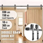 Barn Door Hardware Kit A sliding barn door hardware kit is a great way to add a little privacy to an open space or divide a separated space. It is made of high-quality, heavy-duty carbon steel, secure & reliable with powder-coated and 330lbs load-bearing capacity. Anti-jump, floor guide, and door stoppers are beneficial to keep stability. Right Size For Door Heavy Carbon Steel Easily Sliding Detail Practical Designs VEVOR is a leading brand that specializes in equipment and tools. Along with thousands of motivated employees, VEVOR is dedicated to providing our customers with tough equipment & tools at incredibly low prices. Today, VEVOR has occupied markets of more than 200 countries with 10 million plus global members. Why Choose VEVOR? Premium Tough Quality Incredibly Low Prices Fast & Secure Delivery 30-Day Free Returns 24/7 Attentive Service VEVOR is a leading brand that specializes in equipment and tools. Along with thousands of motivated employees, VEVOR is dedicated to providing our customers with tough equipment & tools at incredibly low prices. Today, VEVOR has occupied markets of more than 200 countries with 10 million plus global members. Why Choose VEVOR? Premium Tough Quality Incredibly Low Prices Fast & Secure Delivery 30-Day Free Returns 24/7 Attentive Service Suitable Door Size To help you choose the suitable barn door hardware kit, we recommend the track length should be twice the door's width at least, and you can also cut the track into any length to meet your needs. Durable Carbon Steel Carbon steel material can effectively keep the double barn door hardware kit be durable in extreme weather conditions. With black powder coated on the surface, ensure it be sturdy and elegant. Tracks and Rollers The nylon rollers can minimize friction to slide smoothly and quietly for the effortless operation of your sliding door. And the heavy carbon steel track is sturdy and will not easily be deformed. Stable Design Details You can fix the barn door hardware kit in any position by adjusting the screws on the door stoppers. The T-shape floor guide works for both non-grooved and grooved doors. Anti-jump also keeps the door away from swinging. Easy & Quick Assemble Barn door track includes 4 x hangers, 3 x tracks, 7 x track supports, 7 x M8*90 screws, 8 x M10* 60 screws, 4 x door stoppers, 4 x anti jumper, 4 x floor guides. As the picture shows, you can install every accessory in the right position. Wide Application The sliding barn door kit can be installed on both wooden walls and concrete walls. A bedroom, dressing room, kitchen, barns, garages, and stables are great for usage. Specifications Model: VV-HDGCDGM-SMDGJX10FT Material: Carbon Steel Load Capacity: 150 kg/330 lbs Track length: 10 FT/305 cm Hangers Diameter:2.4 x 1.57 x 11.8"/6 x 4 x 30 cm Max Door Width: 5 FT/152 cm Fit Door Thickness: 1.37-1.77"/35-45 mm Color: Black Item Weight:24 lbs/11 kg Package Content 4 x Hangers 3 x Tracks 7 x Rail Supports 7 x M8 * 90 Screws 8 x M10 * 60 Screws 4 x Door Stoppers 4 x Anti jumpers 4 x Floor guides VEVOR is a leading brand that specializes in equipment and tools. Along with thousands of motivated employees, VEVOR is dedicated to providing our customers with tough equipment & tools at incredibly low prices. Today, VEVOR has occupied markets of more than 200 countries with 10 million plus global members. Why Choose VEVOR? Premium Tough Quality Incredibly Low Prices Fast & Secure Delivery 30-Day Free Returns 24/7 Attentive Service VEVOR is a leading brand that specializes in equipment and tools. Along with thousands of motivated employees, VEVOR is dedicated to providing our customers with tough equipment & tools at incredibly low prices. Today, VEVOR has occupied markets of more than 200 countries with 10 million plus global members. Why Choose VEVOR? Premium Tough Quality Incredibly Low Prices Fast & Secure Delivery 30-Day Free Returns 24/7 Attentive Service Barn Door Hardware Kit A sliding barn door hardware kit is a great way to add a little privacy to an open space or divide a separated space. It is made of high-quality, heavy-duty carbon steel, secure & reliable with powder-coated and 330lbs load-bearing capacity. Anti-jump, floor guide, and door stoppers are beneficial to keep stability. Right Size For Door Heavy Carbon Steel Easily Sliding Detail Practical Designs Suitable Door Size To help you choose the suitable barn door hardware kit, we recommend the track length should be twice the door's width at least, and you can also cut the track into any length to meet your needs. Durable Carbon Steel Carbon steel material can effectively keep the double barn door hardware kit be durable in extreme weather conditions. With black powder coated on the surface, ensure it be sturdy and elegant. Tracks and Rollers The nylon rollers can minimize friction to slide smoothly and quietly for the effortless operation of your sliding door. And the heavy carbon steel track is sturdy and will not easily be deformed. Stable Design Details You can fix the barn door hardware kit in any position by adjusting the screws on the door stoppers. The T-shape floor guide works for both non-grooved and grooved doors. Anti-jump also keeps the door away from swinging. Easy & Quick Assemble Barn door track includes 4 x hangers, 3 x tracks, 7 x track supports, 7 x M8*90 screws, 8 x M10* 60 screws, 4 x door stoppers, 4 x anti jumper, 4 x floor guides. As the picture shows, you can install every accessory in the right position. Wide Application The sliding barn door kit can be installed on both wooden walls and concrete walls. A bedroom, dressing room, kitchen, barns, garages, and stables are great for usage. Package Content 4 x Hangers 3 x Tracks 7 x Rail Supports 7 x M8 * 90 Screws 8 x M10 * 60 Screws 4 x Door Stoppers 4 x Anti jumpers