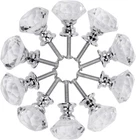 --MATERIAL: Clear cut crystal glass and alloy base, shiny polished chrome, glittering and sparking, diamond shape, good decoration for your home or office. --APPLICATION: Fit for cabinet dresser drawers cupboard wardrobe bookcase etc,give your furniture a sparkly new looking. --INSTALLION:Easy to install. Find the position where you want to install on the board and drill a hole , then pass through the screw from the back of board anf thread tight to the knob. Be careful during the work. --ATTENTION:Please use this knobs with the objects that thickness is not over 1 inch. --SIZE: Screw Thread Length:0.8 inch Height:1 inch Diameter: top 1.3 inches bottom:0.6 inch -The crystal knob is very pretty artistic and durable,ideal for installed cabinet,wardrobe,dresser,drawers,bathrooms,cupboard, bin,wardrobe,newborns room ,armoire,nightstand,large jewelry stand box/drawer hutch redo etc. -You will be surprised after you install it.They looks pretty,sparkly, gorgeous,stunning ,cute adorable feminine touch to any room,Children and ladies at home will be happy it,when the sun shines in the room, they throw prisms of light everywhere. -The knob has high crafts,sturdy and touches very comfortable.It is easy to install with home little tool. FEATURES: -Material: High-quality Crystal glass and aluminum -Size: Screw Thread Length:0.8 inch Height:1.0 inch Diameter: top 1.3 inches bottom:0.6 inch -Color:White Crystal Package include: 4 X Crystal glass handle 4 X Screw