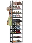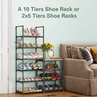 【Keep Your Shoes Neat and Tidy】: The BUG HULL 10-tier stackable shoe rack offers ample storage space for up to 24 pairs of shoes, making it the perfect solution for keeping your room organized and clutter-free. 【Built to Last】: Our shoe organizer is made with high-quality materials, including rust-proof metal tubes and a reinforced frame, ensuring that it remains stable and sturdy even when fully loaded with shoes. 【Fits Any Shoe Style】: Whether you're storing sneakers, boots, or high heels, our shoe rack can accommodate shoes of all sizes, up to US size 12. 【Maximizes Small Spaces】: The compact and narrow design of our shoe rack makes it the perfect solution for small spaces, such as closets, entryways, and apartments. 【Easy to Assemble】: With no tools required, our shoe rack is quick and easy to assemble, allowing you to start organizing your shoes in no time. Versatile Design: Our shoe rack can be used as a free-standing unit or split into two 5-tier racks, making it a versatile storage solution for any space. 【Hassle Free Customer Service】: We are committed to providing our customers with the highest level of service and support. If you encounter any issues with our product, our dedicated after-sales service team will promptly resolve them. Shoes Rack and Organizer 10 Tier Metal Shoes Rack Sturdy Construction Metal Tube Shoe Rack Perfect for 20-24 Pairs Shoes and Boots Convenient Hooks for Extra Storage Adjustable and Removable Shelves Easy To Assemble Easy Cleaning Perfect Size For Narrow Space Vertical Shoe Rack Organizer