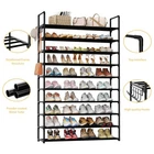 【10-Tier Large Capacity Shoe Rack 】 This shoe rack can 40-50 pairs of shoes, high and wide independent shoe rack, very suitable for storing flat shoes, high heels, sports shoes, boots, toys, storage boxes, etc. Size: 69x33x11.8 inch. 【10-Tier Large Capacity Shoe Rack 】 This shoe rack can 40-50 pairs of shoes, high and wide independent shoe rack, very suitable for storing flat shoes, high heels, sports shoes, boots, toys, storage boxes, etc. Size: 69x33x11.8 inch. 【Space Saving】This shoe rack suitable for storing your shoes and debris, suitable for the entrance door, closet, closet, living room or garage. The metal shoe rack can save maximum space and provide you with a comfortable and clean home. 【Robust & Stable】Our shoe racks are made of powder-coated metal tubes and high quality plastic parts. The shoe rack is stable and durable. The diameter of the metal tube is 13 mm, which makes this shoe rack more durable and does not rust or corrode in normal use. 【Side Hook】 Independent shoe rack side hook.Easy to place keys, wallets, earrings, ties, belts, scarves, etc., to meet the daily hanging needs. 【Detachable & Expandable Shoe Rack】 You can split into two separate shoe racks to adapt to different family scenarios. You can take two shoe racks and assemble them into one large shoe rack that can hold more shoes for family members. Freestanding shoe racks are a good choice for families. 【Easy to Assemble 】 Our shoe tower shoe rack is easy to assemble. Installation takes only a few simple steps. Comes with a user manual to help you assemble your shoe rack quickly and easily.