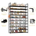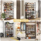 【10-Tier Large Capacity Shoe Rack 】 This shoe rack can store 40-50 pairs of shoes, high and wide independent shoe rack, very suitable for storing flat shoes, high heels, sports shoes, boots, toys, storage boxes, etc. Size: 69x33x11.8 inch. 【10-Tier Large Capacity Shoe Rack 】 This shoe rack can store 40-50 pairs of shoes, high and wide independent shoe rack, very suitable for storing flat shoes, high heels, sports shoes, boots, toys, storage boxes, etc. Size: 69x33x11.8 inch. 【Space Saving】This shoe rack suitable for storing your shoes and debris, suitable for the entrance door, closet, closet, living room or garage. The metal shoe rack can save maximum space and provide you with a comfortable and clean home. 【Robust & Stable】Our shoe racks are made of powder-coated metal tubes and high quality plastic parts. The shoe rack is stable and durable. The diameter of the metal tube is 13 mm, which makes this shoe rack more durable and does not rust or corrode in normal use. 【Side Hook】 Independent shoe rack side hook.Easy to place keys, wallets, earrings, ties, belts, scarves, etc., to meet the daily hanging needs. 【Detachable & Expandable Shoe Rack】 You can split into two separate shoe racks to adapt to different family scenarios. You can take two shoe racks and assemble them into one large shoe rack that can hold more shoes for family members. Freestanding shoe racks are a good choice for families. 【Easy to Assemble 】 Our shoe tower shoe rack is easy to assemble. Installation takes only a few simple steps. Comes with a user manual to help you assemble your shoe rack quickly and easily.