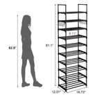 10 Tier Shoe Rack Tall Metal Storage Organizer for Bathroom Bedroom Living Room 【Large Capacity 10 Tier Narrow Shoe Rack】 tier shoe organizer can store up to 20-25 pairs of shoes, and you can remove layer to fit long boots. This shoe organizer is not only suitable for shoes, but also for bags, toys, towels, sundries, books, plants and small accessories. Shoe storage with 5 hooks, you can hang keys, umbrellas, bags, etc., very practical design. 【Sturdy Material & Compact Structure】The tall shoe rack is made of waterproof non-woven layers, reinforced and thickened iron , good stability and prevents rust, The shoe rack closet can hold larger and heavier shoes or objects. The shoe organizer has the characteristics of firmness, stability, and long life. 【 Entrance Shoe Rack】Dimensions of shoe storage: 17"L x 10"W x68"H, simple and elegant appearance. The tall narrow shoe rack can help you make better use of the small space, not only for placing shoes, but also for books and sundries etc. The compact narrow shoe rack is ideal for closets, entryways, dorms, apartments, hallways, closets, and also as a garage shoe shelf for small . 【Easy to Assemble】No tools required, just use the provided parts to manually assemble the unit, which brings you great convenience. Hold the shoes of all family members and keep them organized, you can also split into 5 tier shoe racks 2 units, or order 2 shoe racks and combine them into 1 large shoe rack. 【 Service】Any quality problems and problems with our narrow shoe rack after purchase, please feel to contact after-sales service. New Year Gifts or other special occasions.