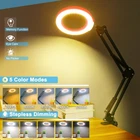 Multifunctional desk lamp with magnifying glass and light Free your hands, Eye protection and energy saving Craft magnifying glass with light hands free is designed with a 4.3" real glass lens for a clearer view. 2-in-1 desk lamp & clamp light design meets more usage needs. It's great for people who need to work continuously at close range or who need visual aids. 10X magnifying work light & Real Glass Lens High-Quality 4.3" real glass lens can provide you clear, undistorted, and realistic visual effects. There is no dizziness even if use it for a long time. 72Pcs LED Beads Light with magnifying glass adopts a ring design with 72pcs built-in super brightness LED provides you with an even, soft light and a large area of illumination. Without glare and flicker. 2-in-1 Desk Lamps & Clamp Light Led magnifying lamp come with a weighted base and clamp, You can easily switch to a desktop standing magnifier or clip light without any tools. Memory Function Desktop magnifying glass with light has memory function, your lighting preferences are conveniently stored, ensuring a consistent and personalized lighting experience every time you use it. Give the best gifts to the seniors We have launched a unique desk light with magnifying glass: it can be applied to welding, crafts, reading, miniature painting, read, sewing, hobbies, mini tasks, jewelry, soldering, beading, fly tying, etc. The lighted magnifier with stand will be your best choice. Specifications: Lens Material: Real Glass Type: Base and Clamp Switch Mode: Button Switch Package Includes: 1 * Magnifying Lamp 1 * Metal Clamp 1 * Desktop Base 1 * Adapter 1 * User manual 【10X Magnification & Real Glass Magnifier】Magnifying glass with light features a 4.3" real glass lens that provides a clear and distortion free view. The 10X magnifying lamp is especially suitable for crafts, reading, miniature painting, sewing, cross stitch, mini tasks, diamond painting, puzzle, jewelry, hobbies, manicure, soldering, repair, nails tech, needlework, beading, fly tying, needlepoint, drawing, book, knitting, solder, etc. Our magnifier with light is designed to meet your needs. 【Upgraded 2-in-1 Desk Lamp & Clamp Light】Magnifying light for crafts hands free come with a weighted base and clamp. You can use the base as a table lamp, which is heavy enough to support a magnifying lamp with light. It also comes with a metal clip that easily attach them to flat surfaces up to 2.1 inches thick, more firm and stable mounted to the desktop, tabletop or workbench. Handsfree lighted magnifying glass with stand to free your hands can point glass and light to the location you need. 【Upgraded Head Button】The desk magnifying glass with light features an upgraded head button to experience hassle-free operation. Unlike other magnifying desk lamps with switches on the power cord, our head button allows for easy and intuitive control. And adjustable swing arm allows you to choose the angle you want. The magnifying glasses with light for close work make it easier to operate the buttons to adjust the 5 color modes and stepless dimming brightness. 【5 Color Modes & Stepless Dimmable】Magnifier with light and stand offers 5 color modes and 10 dimmable brightness to suit your needs. High-Quality ring LED lights provide you with even, flicker-free light, giving you a clearer view and reducing eye fatigue caused by prolonged observation. The table magnifying glass with light has a memory function can keep the mode and brightness last used.
