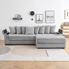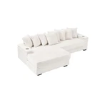 The color of the sofa is beige, its hue is soft, like a gentle snow white that sparkles under the light, not only giving a and natural feeling but also adding a pure and simple atmosphere to the space. The sofa armrests have storage functions, making it convenient to place books and tablets. The right side is equipped with a tea cup rack, is convenient and practical. The L-shaped design of the sofa further enhances its comfort, allowing people to lean and lie lazily, fully enjoying their leisure time. The cushions and pillows are filled with high-resilient foam and stuffed toys cotton, respectively, which have good resilience and soft seating feel, and are not easy to collapse, providing a very high level of comfort. The fabric is made of high-quality corduroy with smooth and thick texture, clear corduroy lines, and dense warp and weft, makes it feel very delicate and thick and less likely to pill. The sofa frame is made of solid wood, which is sturdy, durable, and resistant to deformation, ensuring it can stand the test of time.Description The chaise lounge of this sofa can be switched left and right. You only need to move the position of the chaise lounge slightly, and immediately a spacious area will be expanded, flexibly adapting to the needs of different scenarios and keeping the living room layout always in line with your current wishes. Product Information Sofa size 111.4*33.4*32.2 Product weight 191.5lbs Gross weight 214.93lbs It can seat several people 3 How to maintain the product Regularly clean with a vacuum cleaner Sofa color Beige Package Size A:41.73*29.13*14.17 B:51.96*29.13*9.05 C:49.60*26.37*12.99 Backrest filling material Sponge Frame material Solid wood + wood-based panel Product type Sofa Cushion filling material Sponge Supporting capacity 500 lbs Whether installation is required Yes Installation level Assembly level Seat structure Wood-based panel + Spring cushion Leg material/color Plastic/Black Sofa fabric Corduroy Whether the sofa cover can be removed NO Whether the pillowcase is removable and washable NO Pillow filling material Doll cotton The beige corduroy sofa with multiple throw pillows and a chaise longue that can be swapped. The L-shaped sofa with its simple and streamlined design not only elevates the decor of your home but also adds a warm touch. Made high-quality corduroy fabric, it brings a fashionable yet timeless feel to your living room. When sunlight pours in, it feels lazy and warm, as if has healing powers. The sofa is filled with high-density sponge, ensuring it remains firm even after long hours of sitting. The cushions are filled with polyester cotton, them soft and elastic, providing comfort whether you're sitting or lying down. Meanwhile, the overall structure of the sofa is made with solid wood and plywood, ensuring and weight-bearing capacity. The design concept of the L-shaped sofa is not only to provide a comfortable resting space but also to maximize space utilization. Its armrest function brings a lot of convenience to daily life. So don't miss out on the L-shaped sofa. Choose your favorite color and make your home more fun and! PLEASE NOTE: All colors on our website are for reference only, actual product colors may vary slightly due to different color settings for each screen device. Most of our sofas are measured by hand, so dimensions are for reference only and may vary slightly. On Mar 9, 2025 at 18:09:57 PDT, seller added the following information: