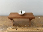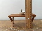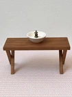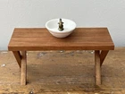 Listing includes: * Tabletop Bathroom Sink - Ceramic bathroom sink with metal faucet sits atop a handmade cherrywood table. The table has a natural finish. The bathroom sink is glued to the table. Measures: 3 1/4" tall (to top of faucet), 5 1/8" long and 2 1/8" wide. * Mirror with round wooden frame - The frame was painted iron ore, distressed and waxed. Mirror measures 2 1/4" in diameter. * Jar of cotton balls - Jar is plastic with a wooden removable lid. * Round metal soap dish. We will combine shipping. If you are unable to request a total from your cart, we will refund the difference in shipping costs once your order has been packaged. Thank you!