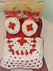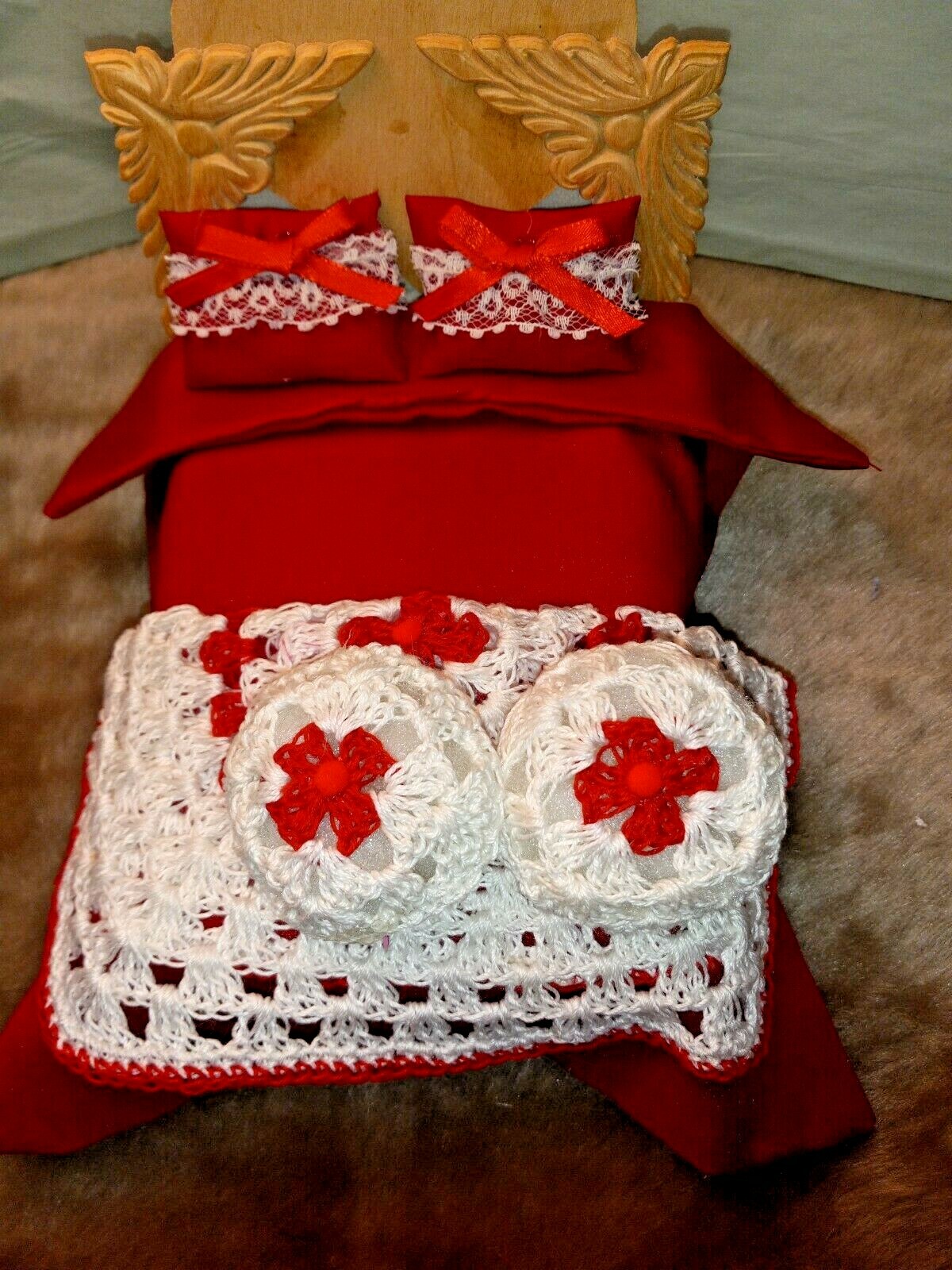 1:12 Dollhouse Bed Comforter/Bedspread Set/ Matching Shams -Crochet Throw - 7Pc Items Included: 1 Bedspread/Comforter - 9"W x 8 3/4"L 2 Matching Shams - 2.5" x 1.5" 1 Crochet Throw 7" x 7" 2 Round Crochet Cushions 2" 1 crochet rug We offer combined shipping to the USA. Save more: Buy 2 sets (different style and pay shipping for 1 set only. Buy more than 2 sets or different items and get free shipping. Please visit my store before you leave. We have hundreds of dollhouse minis listed.: bedding sets 1:12-1:6 scales, embroidered pillows/toss cushions, lampshades, curtain/drapes, flowerpots/Vases, mini dolls figurine s, dolls purses and also, OOK handmade ladies' totes and more. Please subscribe to my newsletter and add me to your favorites. Thank you for visiting!