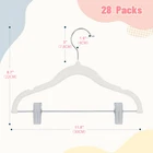 [Baby Velvet Hangers]: The 11.8'' x 8.7'' (30 x 22 cm) velvet baby hangers are made of ABS plastic and soft velvet. Each hanger comes with 2 metal clips, and the PVC rubber on the end of the clips prevents your clothes from leaving unsightly marks. [Adjustable Clips]: The 2 metal clips of the velvet hanger can both be moved and angled at will within 10.5'' (26.7 cm). The skirt hangers can adapt to different sizes of clothes, you don't have to change the hanger as often as your grows. [Space saving]: The 0.24'' (0.6 cm) slim felt pants hanger maximizes your closet space and keeps your clothes neat and organized. The 360° swivel hook at the top of the hanger makes hanging and accessing clothes more convenient and flexible. [Anti-slip Design]: The velvet hanger has a curved contour at the shoulder that keeps your 's clothes in good shape. The V-shaped grooves at both ends of the clothes hanger protect your 's clothes from slipping off, making it ideal for hanging undershirts, school uniforms, dresses, leggings and other clothing. [Notes]: Before using the baby velvet hangers, use a hair dryer to blow the velvet, or put hangers over the water and then air dry, can effectively remove the floating hairs on the surface of hangers.