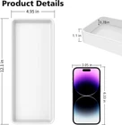 🛀【SIZE & QUANTITY】-- Size: 12.1"x4"x1.1"; Set of 1. Color: White. 🛀【MULTI-SCENE APPLICATION】-- Exquisite, simple and versatile, a great small objects organizer and household decoration. This sturdy light small tray is better placed in the corners of dresser, bedside table, vanity countertop, bathroom, kitchen, balcony, etc. 🛀【MORE DURABLE】 - The same size bathroom tray on the market weighs about 6 ounces, this vanity sink tray weighs 1 pound, heavier than the ordinary bathroom tray, the overall thickened tray is more durable, stylish and versatile. 🛀【QUALITY CONSTRUCTION】 - These small ceramic trays is made of lead-free and non-toxic ceramic,Which is stable and durable. This ceramic sink tray unlike silicone trays, resin, or bamboo, contact with water stains will not be moldy and smelly; No fading, no absorption, no deformation, easy to clean; Microwave/Freezer/Dishwasher safe. 🛀【USE IT ANYWHERE】 -The bathroom tray for counter keep the counters neat and organized; The ceramic tray can work as a display tray for perfume, shampoo, toothbrushes, lotion bottles, cosmetics; Great as key tray for entryway table, bathroom sink vanity trays or kitchen counter tray. Product Description Safe Material: Made of a lead-free and non-toxic ceramic, Stable and durable; Microwave safe; Freezer safe; Dishwasher safe. Find out more about this Small Rectangular Vanity Sink Tray: Perfect Size & Modern color White/Black/Marble Small size : 7.9"L x 4"W x 1.14"H Large size : 12.1"L x 4.95"W x 1.1"H Perfect work as Sink Tray/Vanity tray/Bathroom Tray/Kitchen Tray Suitable for daily use Easy to clean and storage Can mix and match for any place The raised walls can perfectly protect things from falling Perfect placed in the corners of dresser, bedside table, vanity countertop, bathroom, kitchen, ect. A display tray for perfume, shampoo, toothbrushes, lotion bottles, ornaments, jewelry, watches A serving tray for food drinks and coffee Here's the details about it: GOODBYE TO CLUTTER From now on, let all small objects have their own place. Say goodbye to cluttered countertops and keep them neatly organized with this little tray to keep your room, kitchen, bathroom neat and tidy. You will also be relaxed and happy. COMFORTABLE TOUCH The four corners are all rounded right angles, which are very smooth to the touch, and the slightly raised walls are perfect for preventing small objects from falling. NON-SLIP BOTTOM The non-slip base provides safety in use and can be placed anywhere on a smooth surface. Let you have a better service experience anywhere. Exquisite, simple and versatile, a great small objects organizer and household decoration. Two sizes: Small-- 7.9"x4"x1.1"; Large-- 12.1"x4.95"x1.1" Add to Cart Add to Cart Add to Cart Add to Cart Add to Cart Customer Reviews 4.6 out of 5 stars 138 4.6 out of 5 stars 761 4.6 out of 5 stars 138 4.5 out of 5 stars 595 4.5 out of 5 stars 115 Price $10.99 $ 10 . 99 $6.99 $ 6 . 99 $16.99 $ 16 . 99 $9.88 $ 9 . 88 $15.99 $ 15 . 99 Size 1 7.9"x4"x1.1" 6.3"x2.95"x0.55" 9.9"x 5.74"x 1.1" 2oz 7.4"x3"x3.3" Size 2 12.1"x4.95"x1.1" 8.07"x4.21"x0.74" 4oz Size 3 9.84"x4.72"x0.71" 8oz Color White/Black/Marble White/Black/Marble White/Black/Grey/Marble White/Turquoise White/Black Material Porcelain Porcelain Porcelain Porcelain Porcelain Microwave/ Freezer/Dishwasher safe ✓ ✓ ✓ ✓ ✓