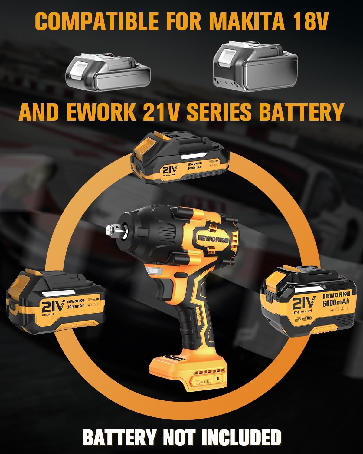 Store New Arrivals Add to Favorite View Feedback Contact Cordless Impact Wrench 1/2 Inch up to 775 Ft-Lbs Torque Brushless Impact Gun, Power Impact Wrenches with 5 Sockets, Only Tool (EK-815J) Description Item model number EK-815J Item Package Quantity 1 Item Torque 775 Foot Pounds Finish Polished Color Yellow and Black Material Alloy Steel Country of Origin China Battery Cell Type Lithium Ion Style 775 Ft-lbs/Upgrade Version(Tool Only) Item Weight 3.52 ounces Operation Mode Battery Head Style Fixed Square Item Length 5.72 Inches Voltage 21 Volts Batteries Required? Yes Batteries Included? No Finish Type Polished Included Components 1 * Cordless Impact Wrench 1/2 inch, 5 * CR-MO Sockets(17/19/21/22/24 mm) ✅ Compatible with Makita 18V battery and EWORK 21V series battery ✅ EWORK 1/2 inch Cordless impact wrench with brushless motor is 60% more efficient and has a 150% longer lifespan compared to traditional brushed motors, allowing this cordless impact wrench to deliver up to 775 ft-lbs (1050 Nm) of forward torque. Additionally, this impact wrench 1/2 operates with 40% less noise and vibration, providing a smoother and more comfortable user experience ✅ EWORK Cordless impact wrench 3-speed mode (700/1600/2300 RPM) on the EWORK cordless impact wrench 1/2 inch, you can adjust the torque to suit different tasks. The 1/2 impact wrench reverse auto-stop function prevents nuts from flying off, ensuring additional safety. With a maximum reverse torque of 812 ft-lbs(1100 Nm), you have the power to tackle tough jobs with this power impact wrench ✅ Compact design impact wrench width of 6.49 in and a weight of 4.13lb (without battery), the EWORK power impact gun 1/2 drive is easy to handle and carry. The ergonomic handle with a soft grip reduces fatigue during prolonged use of this half inch impact wrench. The built-in LED light, with a 10-second delay, provides illumination in low-light conditions, enhancing safety and convenience ✅ We offer a 365-day replacement-only warranty for this cordless impact gun. If you encounter any issues with the battery impact wrench within the first year, we'll replace it—no repairs EWORK Cordless Impact Wrench 1/2 Inch Up to 775 Ft-lbs, Only Tool ABOUT US We offer the best prices around on high quality products. Our E-store includes media such as books, movies, music and games while offering electronics, toys, sporting apparel, clothing, tools, general home, garden items and more. SHIPPING We are always working hard to ensure your package arrives as soon as possible. Please understand that some factors like weather, high postal traffic, and the performance of shipping companies are outside of our control. We offer free shipping to the lower 48 states and ship within 2 business days of payment, usually sooner. We do not accept P.O. Boxes. Please provide a physical address. For shipping outside of the continental USA, we only use eBay's Global Shipping Program.The item is shipped to KY and then sent to the rest of the world. International customers are responsible for all duties and taxes. Continue to check out in order to calculate costs for shipping the item to your country. Messages regarding eBay's Global Shipping Program MUST be directed at eBay EXCLUSIVELY. RETURNS We offer a 30-Day Return Policy on items which you are not completely satisfied with. You have the option for a full-refund or an exchange of the item. No returns are available on items shipped outside of the USA. PAYMENT We accept PayPal. CONTACT US This page content is yet to come Please ad us to your favorite seller and visit again later Thank You CUSTOMER SATISFACTION We try our very best to make sure every customer is completely satisfied. If there's a problem, message us! We're happy to help. WE ACCEPT Copyright © 2021 AutoDS. | All Rights Reserved