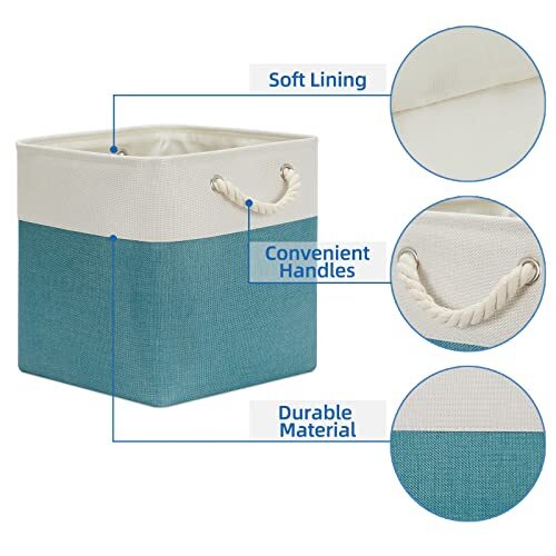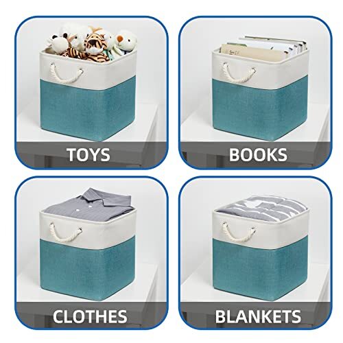 We offer Free Shipping on all order!! Wel come to my stores, The Smart of your choice and satisfaction guarantee. Cubes Storage Baskets 12 Inch Cube Storage Bins for Shelf, Fabric Storage Cubes for Gift Empty Toy Baskets for Kids, Collapsable Box Baskets for Storage (White&Teal) Gallery Product Description Features CUBE BASKET SIZE: 12 (L) x 12 (W) x 12 (H) inches, 4-PACK. Perfect storage cubes for gifts empty, decorative storage boxes for nursery organizers. This cube storage basket allows to store of a variety of items. A sturdy fabric storage cube may be used to hold clothes, towels, blankets, bedsheets, DVDs, magazines, books, shoes, pet toys, office supplies PREMIUM QUALITY: These fabric storage baskets are made of durable linen &thicken EVA, with soft interior lining. Reinforced by an upper metal supporting frame for maintaining greater structural integrity. Durable and high-quality material makes these storage organizer baskets last a good long time PRACTICAL STORAGE BINS: These 12x12 storage cube bins are an excellent choice for keeping your space nice, tidy, and organized. Decorative storage basket ideal for living room, bedroom, bathrooms, utility room, kids room, Nursery Room, craft room, playroom, closet, dorms, condos, laundry room, toilet, or even in the hallway. The dog toy basket set provides a perfect, lightweight way to accessorize, organize EASY to CARRY: The cloth storage bin comes with 2 sturdy handles for easy access and for portability. Sturdy rope handles that add a classic touch, and make this fabric cube basket are sturdy and easy to grab and make it easy to carry or pull off and out of shelves. COLLAPSIBLE STORAGE BASKET: These foldable storage cubes are collapsible for easy storage if not in use, simply fold the closet basket down flat for space-saving storage when not in use or to transport Usage Tips: The cute gift bin set comes with compression packing which may result in wrinkled in long-distance transit. DON'T Worry! Iron the wrinkles out with a steam iron or Fill the basket with stuff. Due to the light when shooting difference and other natural reasons and display resolution is different, there is a little color difference is normal, You can rest assured that our product is high quality Thank you for your business, your trust and your confidence. It is our pleasure to work with our customers. Delivery ☎ If you have any question. Please do not hesitate to contact us. Please send us message via eBay system. We reply every message within 24 hours. If you did not receive our reply. We think maybe we did not receive your message. Please send us message again. Payment Policy ❤ Payment managed by eBay. Shipping Policy We only send the item according to the address on Ebay, the address can't be changed once we pack the item. Please double check your shipping address it before your send the payment. It should take 3-5 business days for the product to reach your destination. If the product doesn't reach your destination within the time limit, please give it an additional 1-2 business days in case of postal delays and/or possible technical issues. We use a selection of shipping services such as UPS, FedEx, USPS etc. We ship only to the 48 contiguous states of America. We do not ship to Hawaii, Alaska, US Protectorates, APO/FPO addresses and PO Boxes. Local pickups are not offered. If it takes any longer than that, please do not hesitate to contact us to resolve the issues. Feedback ❤ We take our reputation seriously, we buy and sell online, so we understand the value of trust. If you are unsatisfied with your order, please contact us and we will work with you to resolve it to your satisfaction. Return Policy - This product comes with 30-Days Money Back Guarantee. - If you receive an item and it doesn't work properly or you don't like it because of any reason at all. - We have a 100% refund/return policy. We will ship you a new item or refund your money for the full sale amount. - For all returned products, buyers MUST contact us for the returning address.
