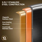 12INCH Tri-Ply Stainless Steel 5 QT Wok Pan with Lid, Induction pan,suate pan,deep frying pan,dishwasher and Oven Safe Tri-Ply Clad:Made with a responsive aluminum core bonded together with 2 layers of durable, stainless steel all the way around for maximum durability and fast, even heat distribution. Food Stainless Steel:Highly polished food stainless-steel cooking surface with starburst finish offers superior stick resistance and easy maintenance, plus won’t react with food. Cool Touch Double Handles: Secured with double side stainless-steel handles to ensure a safe grip and balance while providing cool touch handles. Suitable for All Stoves:Works on all cook stovetops, include induction. The high quality stainless steels and the aluminum core make it dishwasher-safe and oven-safe up to 500°F. Your Reliable Partner:All the Cookware from in PFOA-Free,SGS Certified. Each pan and pot from heats quickly and spreads heat evenly because of our High-Control level of materials.