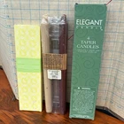 12 Tapered Candles Different Sizes Different Shapes Diffrent Colors NEW Open Box Sealed 4 Green 2 Tan 2 bungundy 2 Lime green 1 Yellow 1 Blue for inventory = Kiki Box