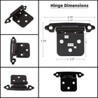 Variable Overlay Hinges: Our Cabinet Hinges are suitable for your overlay cabinet doors in kitchen and bathrooms. Overlay Hinges provide long-lasting durability, a soft closing, and the reinforced strength to outlast even the roughest kitchens or bathrooms. If you plan to replace your cabinet hinges or install your cabinets by yourself, think about cabinet hinges. These could be your best option: Premium thickened metal & sturdy screws are used Standard replacements while at much lower cost Two different attractive colors for choice Upgraded Steel Screws Secure from 5 positions Durable to use Important Note: These are overlay hinges not inset hinges. There is a big difference so please know what you are buying. Overlay means your cabinet door "overlays" (or overlaps) the cabinet frame and thus the door is perfectly flat on both front and back. A type of overlay is a Variable Overlay, these only come in a face mount. These are called Variable Overlay because your door does not have to overlap your frame by a set dimension (such as 1/2in. or so). Package Includes: The cabinet hinges are well packaged in a box: Cabinet Hinges x 25 Pair (50 pcs) Steel Screws x 25 Set UPGRADE YOURS TODAY: These semi-concealed, exposed hinges for cabinets work perfectly on your classic American cabinets. The finish on the black hinges for cabinet doors matches your style of cabinet pulls perfectly. ½ INCH OVERLAY CABINET HINGES. It means your cabinet door "overlays" (or overlaps) the face cabinet frame. The variable overlay self closing cabinet hinges are used for surface mount cabinets in your Kitchens and bathrooms. SELF CLOSING ACTION: These exterior cabinet hinges gives you outstanding functionality and product performance. Your kitchen cabinet door hinges will automatically close under 30 degrees. Silicon dampers also ensure every close is a quiet one. NEWLY UPGRADED HINGE SCREWS. The surface mount black kitchen cabinet hinges come with newly strengthened 5/8 screws to ensure a perfect fit, even using with power tools. Separately packed with silicon cabinet door bumpers for your convenience. BUILT TOUGH FOR AMERICAN FAMILIES. Our black overlay cabinet hinges can take the everyday grind of large families. Thick stainless steel and an electroplated outer coating of black finish mean they are durable, rust-proof kitchen hinge made to last.
