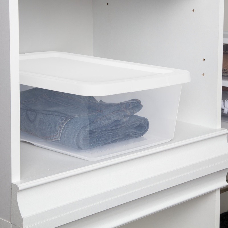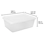 You may also like Stackable Plastic Storage Bins W/ Lids 68Qt 6Pack Home Office Organization New 64.77 USD 68.18 USD Free shipping 5% off Plastic Storage Box Stackable W/ Lid Handle Label Window Clothes & Accessories 9.0 USD 9.47 USD Free shipping 5% off 62 Qt Airtight Plastic Bin Storage Containers Stackable Tote w/Sealed Blue Lid 42.73 USD 44.98 USD Free shipping 5% off Large Storage Bin 90 Quart Stackable Clear Plastic Container W/ Lid 2 Pack New 28.82 USD 30.34 USD Free shipping 5% off Clear Storage Bin 28 Qt Stackable Plastic Containers Snap-on Lid Pack of 10 New 70.44 USD 74.15 USD Free shipping 5% off 41 Compartment Plastic Storage Organizer Drawers Tools Crafts Office Supplies US 36.73 USD 38.66 USD Free shipping 5% off Stackable 12 Gallon Black/Red Snap Lid Storage Tote Home Organizer Box New 14.44 USD 15.2 USD Free shipping 5% off 4 Pack 11 Gallon Heavy Duty Plastic Storage Box Industrial Garage Containers New 71.55 USD 75.32 USD Free shipping 5% off 30 Drawer Small Parts Organizer Desktop Wall Mount Storage Cabinet Tool Craft US 31.54 USD 33.2 USD Free shipping 5% off 45 Qt Plastic Storage Bins W/ Lids Stackable Clear Totes 4 Pack organization New 58.65 USD 61.74 USD Free shipping 5% off Heavy Duty 27 Gallon Stackable Plastic Storage Totes W/ Snap Lid Set of 4 New 72.44 USD 76.25 USD Free shipping 5% off Set of 4 Stackable Clear Bins W/ Snap-on Lids Storage Organizers Household Use 51.74 USD 54.46 USD Free shipping 5% off Get organized with the Clear Storage Box line! The 12 Quart Storage Box is ideal for a variety of basic and lightweight household storage needs, helping to keep your living spaces neat. The clear base allows contents to be easily identified at a glance, while the opaque lid snaps firmly onto the base to keep contents contained and secure. Stack same size containers on top of each other for efficient use of vertical storage space. When storing items away, use good judgment and don’t overload them or stack them too high; be mindful of the weight in each box and place the heaviest box on the bottom. This storage box is ideal for sorting and storing shoes, accessories, clothing, crafts and other small items around the home and fits conveniently on 16" wire closet shelving, bringing order to closets. The 12 Qt and 20 Qt Storage Boxes use the same lid, allowing both the shallow and deep sizes to be stacked in the same footprint. The overall assembled dimensions of this item are 16 3/8" L x 11 1/4" W x 5 3/8" H. Adult Plastic 12 Qt. Storage Box White Outside Dimensions: 16 3/8" x 11 1/4" x 5 3/8" Ideal for a variety of basic and lightweight household storage needs Opaque lid snaps firmly onto the base and provides a grip for easy lifting Clear base allows contents to easily be viewed and located Indexed lids allow same size storage boxes to securely stack upon each other BPA-free and phthalate-free You may also like 15in Carbon Wheel Cover Kit 4 Pack Durable Easy Install Steel Wheel Fit New 58.29 USD 61.36 USD Free shipping 5% off Microfiber Accent Chair Padded Seat Easy Clean Armchair Living Room Office New 174.34 USD 183.52 USD Free shipping 5% off Upholstered Entryway Bench Tufted Ottoman Cushion Small Space Seating Indoor Use 70.66 USD 74.38 USD Free shipping 5% off 15 Piece Knife Block Set Ergonomic Stainless Steel Kitchen Knives W/ Sharpener 76.57 USD 80.6 USD Free shipping 5% off 7 Drawer Storage Dresser W/ USB Power Ports Modern Cabinet Anti-Tip Safety 217.91 USD 229.38 USD Free shipping 5% off Interlocking Outdoor Wood Deck Tiles Easy Install Customizable 27 Sq Ft New 102.67 USD 108.07 USD Free shipping 5% off Extra Long Collapsible Utility Wagon Heavy Duty Folding Cart All Terrain Wheels 141.33 USD 148.77 USD Free shipping 5% off Contemporary Fabric Dining Chairs Set of 2 Armless Upholstered Indoor Chairs New 155.48 USD 163.66 USD Free shipping 5% off Ergonomic Height Adjustable Office Chair W/ Lumbar Support Footrest Teens Adults 117.66 USD 123.85 USD Free shipping 5% off Farmhouse TV Stand TVs up to 70" Adjustable Shelves Cable Management Glass Doors 144.75 USD 152.37 USD Free shipping 5% off Durable Bumper Plate Weight Set 100 lbs W/ 7FT Barbell Clips Heavy Lifting New 194.35 USD 204.58 USD Free shipping 5% off 3 Inch Green Tea Gel Memory Foam Mattress Topper Queen Zoned Support Sleep Aid 78.93 USD 83.08 USD Free shipping 5% off