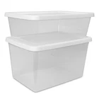 Organization is made easy with the Sterilite Set of (4) 12 Quart Clear Storage Bins with lids! The clear base lets you see what's inside while the snap-on lid keeps everything contained. The space-efficient shape and recessed lids allow bins to stack securely, maximizing vertical storage space. Sort and store a variety of household items to bring order to closets and bedrooms! Ideal for storing shoes, clothing, accessories, crafts and more. This size conveniently fits on standard closet shelving. Note: Use good judgment when storing items, don’t overload, keep heaviest bin at bottom, and don’t stack too high. The overall assembled dimensions of this item are 16 3/8" L x 11 1/4" W x 5 3/8" H. Sterilite Set of (4) 12 Quart Storage Boxes, Clear Plastic Storage Bin with Snap-on Lid, White Outside Dimensions: 16 3/8" x 11 1/4" x 5 3/8" Interior Dimensions at bottom: 13 7/8" x 9 1/8" x 4 3/4" Clear base allows you to view contents at a glance Snap-on lids keep contents contained and are recessed to allow for stacking Ideal for basic storage needs throughout the home, and fits on standard closet shelving Use good judgment when stacking items, keep heaviest bin at the bottom BPA-free and phthalate-free