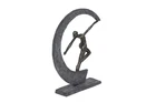 Lightweight, textural, dark gray and gold resin is sculpted into a female figurine dancing with arms outstretched within a crescent moon shape. The ballerina-like figurine has a metallic gold finish, while the crescent shape and base both have a very textural gray hue that looks like stone. Use this as centerpiece in your living room set up to release some modern dance vibes. Wipe clean with a dry cloth. Suitable for indoor use only. Modern design. This item comes shipped in carton. MODERN THEME: Features a modern style inspired by a minimalistic design with clean lines and angular structures MADE WITH RESIN: This awesome sculpture is made from polystone resin materials GRAY MATTE FINISH: Figure is painted dark gray with a metallic gold finish, and distressed stone-like gray hue and texture FEATURES ROUND SCULPTURE: Features a graceful dancer forming a moon-shaped figure from the movement of her hand CONVENIENTLY SIZED: This resin shelf decor statue measures 12”L x 3”W x 15”H and weighs 3 lbs ; base measures 10” x 3” x .5”