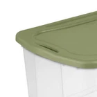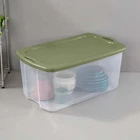 Make moving your storage easier, with innovative line of EZ Carry Storage Boxes and Totes! Unique through handles are designed to provide full grip access for comfortable lifting and carrying, as well as easier maneuvering through doorways, hallways, and up and down stairs. The 120 Quart size is ideal for blankets, sleeping bags, seasonal clothing, sporting gear, and other bigger, bulkier items around the home. The clear base allows for quick viewing of contents, and the recessed lids allow same size storage boxes to stack neatly on top of each other to use vertical storage space efficiently. The 120 Qt EZ Carry Clear Storage Box shares the same lid as the 30 Gallon EZ Carry Tote so the clear and opaque versions can be stacked interchangeably. The overall assembled dimensions of this item are 34" L x 20" W x 15" H. 120 Quart EZ Carry, Clear Plastic Storage Bin, Full-Grip Handles, Green Outside Dimensions: 34" x 20" x 15" Interior Dimensions at bottom: 27 5/8" x 15 7/8" x 14 1/4" Carry through handles allow for full grip access and easier portability Ideal for a variety of household storage needs, with a wide range of sizes The clear base allows for quick viewing of contents Deep recessed lid allows for secure stacking of multiple bases BPA-free and phthalate-free