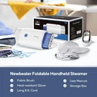 [Powerful 2 Levels Handheld Steamer] The steamer takes about 20 seconds to heat up with the help of 1200W heating element and the unique 2 steam levels (16-24g/min) enable steam to pass through easily through the cloth to thoroughly and quickly remove wrinkles. Further the high temperature soleplate enhances the ironing effect and the 248-degree Fahrenheit steam can deep clean your clothes and also remove odors for a complete clean experience. [360 Degree Leak Proof Technology & Easy to Use] The steamer is designed with a unique leak proof, anti-drip and anti-spill technology, so that you can steam from any angle without having to worry about leakage and it doubles as iron without or with steam. Further, the easy on and off access button with indicator light has a simple press function for a continuous flow of steam. [Detachable Water Tank] The detachable design makes the steamer easy to refill. The transparent design of the water tank allows for a clear observation of the remaining water and 10 minutes of continuous steam (180ml) allows you to remove wrinkles, straighten more clothes for one time. We recommend you use demineralized or distilled water for the best performance. [Elegant & Portable] The steamer boasts an exquisite, foldable design, making it effortlessly portable for your travels. Despite its compact form, it ensures your fabrics stay smooth even during vacations. Note: At 1.5 lbs, we consider it lightweight, but perceptions may vary. And this model is designed for use with 110-125V outlets only. Please assess according to your travel needs and preferences. For a dual-voltage model, search for NB316A-dual. [Accessories Included] Net weight: 1.5 lbs; package weight: 1.87 lbs. In addition to the steamer, this package includes an attachable fabric brush and a heat-resistant ironing glove, which work well with your fabric steamer. If there are any issues, please inform us through .