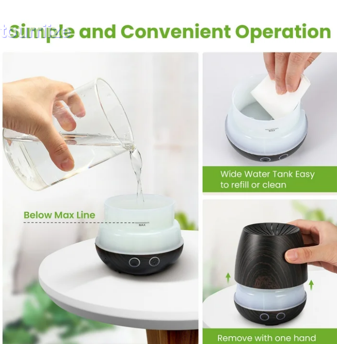 🌹Aromatherapy Transform your home or office into a soothing oasis with the Noahstrong Essential Oil Diffuser. This powerful aromatherapy diffuser combines the charm of a wood grain finish with advanced ultrasonic technology, creating the perfect ambience for relaxation and wellness. Designed to aid in aromatherapy, it efficiently disperses your favorite essential oils to promote a sense of calm and relief from anxiety and stress. ♨️2 Misting Modes Our humidifier with essential oil diffusers has 2 mist modes. Continuous mist mode can last up to 6 hours, while intermittent mist mode can last up to 9 hours, it's suitable for extended use in any setting. The quiet operation at just 25dB ensures your tranquility remains undisturbed. 🌈7 Colors Mood Light Enhance your aromatherapy experience with the tranquil glow of 7 colored lights, doubling as a gentle nightlight. Dimensions: 4x4x4 inches. This space-saving design complements any decor making it not only a utility but also a stylish addition to your surroundings. 🧘♀️ Applicable Occasions The aromatherapy oil diffusers feature a large and easy to clean 120ml water tank which is ideal for large rooms, bedrooms, living rooms, offices, bathrooms, or cars, it effectively covers spaces ranging from 108 to 161 square feet.This fragrance aroma diffuser doubles as a humidifier, it adds essential moisture to the air, improving sleep and elevating your environment's comfort. 💝 Perfect Gift As aromatherapy gifts for women or men. Whether it's Mother's Day, Father's Day, Valentine's Day, Christmas, Thanksgiving, or Birthday, this diffuser is an ideal present to show care and thoughtfulness. Gift a moment of peace. Specifications: Capacity: 120ml Material: ABS+PP Mist Output: 20ml/hr Applicable Area: 108-161 square feet Noise Level: ≤25dB Mist Modes: Continuous / Intermittent Lights: 7 Color GRB lights Packing list: 1*120ml diffuser 1*USB adapter 1*User manual Note: Do not add water beyond the water level line to produce the best fogging effect. When the water is exhausted in the water tank, the Oil Diffusers will automatically enter the shutdown state that giving you peace of mind.