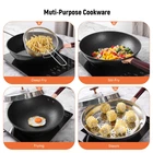 Non-stick & Easy Cleaning: The woks and stir fry pans nonstick with a lid to adopt stone coating and carbon steel which are free of PTEE and PFOA, allow you to cook with LESS oil or butter. Less lampblack, more healthy. Cleans up easily, dishwasher safe (hand wash is recommended). Don't need seasoning before use. Rough Rust-resistant & Prevention coating fall off: This coating uses hardening and anti-scratch technology to prevent scratching, staining, and falling off, enhances both durability and cooking performance which will not get rusty. Versatility: The non sticking frying pan set is everything you need to prepare delicious stir-fry, steaming, roasting, boiling, baking meals, and more. The non stick stone wok with the cover set can be used as a deep fry pan, saute pan, deep skillet, frying wok, stir fry wok, stir fry pan, baking dish, egging frying pan, roasting pan, rice cooker, steamer, and deep stockpot. The wok is suitable for a family of 5-6 people with a large capacity, not afraid of splashing oil. Heats quickly and evenly & Suitable for most stoves: The flat bottom conducts heat quickly and evenly with precise temperature control. The 2 mm-thick body makes this wok pan durable and anti-warping. Suitable for all occasions, with stoves, induction cooker, gas ranges, and other heat sources. Package: The pots and pans set nonstick includes a 12.5-inch nonstick frying pan with a lid and a roasting steaming rack. The wooden handle is in line with the human body, engineered solid wood anti-scalding design keeps a cool feel when cooking at high temperature.