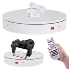 Motorized Turntable Functional Features The load-bearing range of this rotating display stand is between 88-350 pounds. In continuous rotation mode, the load-bearing capacity can reach 350 pounds. If rotated by angle, it involves rotation accuracy, and the load-bearing capacity is 88 pounds. 360 degree professional rotating platform, which can be used for product display, painting art, product photography and 3D scanning. Package includes turntable, power supply, remote control (batteries not included). This photography turntable features a metal-nylon hybrid gear reduction box design, which further reduces operational noise. Additionally, This turntable utilizes software-based variable frequency speed regulation technology, extending its speed adjustment range to as many as 25 gears. 360 degree professional rotating platform, which can be used for product display, painting art, product photography and 3D scanning. Package includes turntable, power supply, remote control (batteries not included). This photography turntable features a metal-nylon hybrid gear reduction box design, which further reduces operational noise. Additionally, This turntable utilizes software-based variable frequency speed regulation technology, extending its speed adjustment range to as many as 25 gears. This motorized turntable has a diameter of 12.6 inches.,the load-bearing range of the display rotating platform is between 88-350pounds. In continuous rotation mode, the load-bearing capacity can reach 350 pounds. If rotated by angle, motorized turntable involves rotation accuracy, and the load-bearing capacity is 88 pounds. Remote control speed: the motorized turntable speed range is 27-72sec/rev.(the maximum speed is 27 seconds per circle & the minimum speed is 72 seconds per circle). Precision manufacturing ensures smooth, quiet operation with minimal vibration and disturbance. This photography turntable supports four rotation modes: 【Continuous Rotation Mode】for Live Video Show.【Single-Step Mode】for Product Display and Live Demonstration.【Repeated Step Mode】 for Automated Product Display .【Multi-step Within Circle Mode】for 360-Degree Multi-Angle Photography and 3D Scanning. The intelligent multi-step within circle mode makes shooting more streamlined and automated. Our high-end motorized turntable features precise angle settings and a user-friendly combination button design, supporting a wider range of application scenarios. Motorized turntable supports: Setting the current position as the origin (used in conjunction with the "Return to Origin" button). Large motorized rotating display stand supports: Saving current settings to the turntable's built-in flash memory. Heavy duty display turntable supports: More angle button and mode button combinations, providing greater flexibility for various applications. The excellent structural design of this lazy susan ensures smooth rotation. Internally, the photography turntable incorporates a flat thrust bearing, enabling it to withstand heavier loads. rotating platform is equipped with a high-precision reduction stepper motor (brushless motor), delivering high torque, long lifespan, stable rotation, quiet operation, and reliable performance. 【Frosted appearance】- The frosted surface of the photography turntable is better resistant to scratches and wear, maintaining a good appearance for a longer period of time. The frosted surface reduces light reflection, making the turntable easier to operate and observe in bright environments. The matte effect looks more modern and high-end, enhancing the visual appeal of the device. The lazy susan also provides better anti-slip properties, improving stability and safety during use. 【Wide range of application scenarios】--High-precision motorized lazy susan turntables are suitable for displaying artworks, models or products to enhance visual effects and audience experience. Precise remote control and smooth matte surface help capture stable, clear images of your product or scene, reducing light reflection and improving shooting results. The rotating platform is ideal for retail displays and displays, allowing display angles to be adjusted remotely and maintaining long-term aesthetics. Our large motorized rotating display stand is equipped with a power adapter certified for both UL (USA) and CE (EU) standards, ensuring safe operation. This power adapter has an input of 100-240V AC and an output of 15.5V DC/1.2A, with a replaceable US-style plug. Additionally, the entire large heavy duty photography turntable has passed FCC-ID certification (USA).