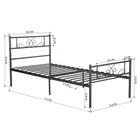 Its modern designed headboard and footboard creates a warm and elegant feel to your sweet home. Modern and safe design with 6-legs contacting the floor for durability and stability. The metal bed frame owns a 12.7inches clearance under the bed which provides more storage room for you. Type:Metal Bed No box spring needed; Color: Black.Material:Metal Fast and easy assembly; Available size:twin,full,queen; Style: Modern Farmhouse Style Max Weight Capacity:280 lbs Headboard Height: 43.70" Footboard Height: 29.52" Product Size:77.5"x 36" x 34.8"(L*W*H) Package Contents: metal Full bed(all in one package) hardware tool kit manual instruction Unique Flower Sturdy System:strong steel metal structure for durability & stability, quiet, noise free and large bearing capacity Easy Assembly:The bed frame is installed with Victorian style headboard, no box spring needed. The package includes clear instruction,all parts and tools,very easy to assemble. Under Bed Storage:storage space under the frame,offer more space for you to storage anything. (Mattress No included). Manufactured by 30+ Years Experience factory detail constructed with heavy duty steel slabs Twin Bed frame Size :77.4" x 36" x 34.8" (L*W*H),no mattress come. Maximum support 170-280 lbs.