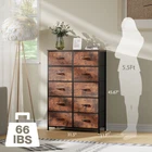This premium clothes organizer mixes classic and modern designs, allowing it to blend seamlessly with any decor style in your home, and perfectly fit as a kid's dresser, baby dresser, bedroom dresser, closet dresser, and nursery dresser. For easy storage, 2 sizes of storage space drawers are offered. These 10 foldable deep drawers are spacious enough to provide endless organizational possibilities. The wooden top of the dresser organizer is great for lamps, clocks, glasses, and other daily essentials, keeping them within your reach. This chest of drawers is equipped with premium metal rails and durable storage drawers. The tall dresser is made of high-quality MDF board material (Capacity: 66lb) and is not easy to deform. The surface of the wooden dresser is smooth and easy to clean. The bedroom storage cabinet is equipped with a thickened and durable steel frame for long-lasting construction. It comes with triangular support bars and anti-tipping accessories to prevent accidents.