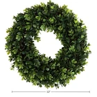 12-INCH WREATH - The faux boxwood door wreath is UV-protected to resist fading in sunny conditions, so it maintains a vibrant hue over time. These versatile all-season wreaths are perfect for summer, fall, winter, or spring door décor. LIFELIKE DESIGN - The vivid greenery of the front door wreath is full of natural-looking color variations and enhanced with embedded faux twigs to give the boxwood wreath a lush and lifelike appearance to your kitchen, living room, or front door décor. ALL-SEASON USE - Add some colorful berries to transform it into a holiday wreath or create fall and spring inspiration with a welcoming classroom door decoration by attaching golden-hued artificial leaves or flowers to the rich green faux foliage. LOW MAINTENANCE - This outdoor wreath needs no special care to keep it looking fresh and clean. Simply dust the wreaths for front door occasionally or wipe the leaves with a soft cloth to keep them looking great for year-round use indoors and out. PRODUCT DETAILS - Materials: UV-Resistant Plastic. Dimensions: (L) 12" x (W) 12". Color: Green.