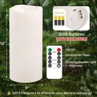 Immerse Yourself in Outdoor Peace with 's Large Waterproof Flameless Candles 's Waterproof Outdoor Flameless Candles are the perfect addition to your home decor. With weatherproof and heat-resistant design, they are ideal for outdoor use as porch mood lights or in lanterns. Our battery-operated candles offer convenience with remote control and timers. Enjoy the ambiance with no flames, no smoke, or no melting Specification: Material: Plastic +PVC Color: Ivory white Light Color: Warm Yellow Light Battery Type: 3 x AA Batteries (NOT INCLUDED) Battery Life: 500+ hours / 45 days (high-grade batteries in 6H timer ) Wide Decoration:Get Ready for Your Events! Our Ivory flameless candles are perfect for parties, festivals, celebrations, and weddings. They emit a warm yellow glow, ideal for indoor and outdoor use. With their large size and bright light, add more ambiance to any occasion Timer Setting: Our perfect lantern candles candles are designed to fit most large decorative vintage lanterns, avaliable in different size candle in height and in diameter. With their bright lights and long-lasting performance of up to 45 days, they're perfect for setting the mood at your family dinner. Feature a smart timer option of 2/4/6/8 hours, cycling every 24 hours, so you can enjoy the lights without the need to manually turn them off Great for Outdoor Use: Our IP65 Waterproof Candles withstand rain and sunlight, ensuring they're perfect for outdoor settings. With no melting or mess, more safe for use and ideal for home decoration, porch lights, table settings, fireplace and more. IP65 WATERPROOF OUTDOOR CANDLES: Made from durable, thicken, waterproof plastic and Eco-Wick, they feature a solid screw-in waterproof base and sealing gasket to hide the main accessories inside the waterproof shell,ensuring long-term use in outdoor settings. Display on your patio table, porch steps or window sill without worrying about hot weather, heavy rain, mist and cold environments.No melt or warp EXTRA LARGE PILLAR CANDLE: Measures 12 inch in height, 5 inch in diameter, bigger than most waterproof candles, tea lights and votive candles. When you light up this led candles ,They look like real candles with flame, Flameless and smoke-free,real and full of beauty.Elevate your outdoor ambiance with our extra-large flameless candle in patio, porch, verandas, pools, and courtyards EASY TO CONTROL WITH REMOTE:Easily turn ON/OFF your timer candles with the switch on the bottom. The Remote Control offers timer options of 2H/4H/6H/8H, saving the trouble of manual operation. Enjoy automatic lighting at the same time every day. Customize light modes (flicker or steady glow) and brightness level to suit your preferences PAIR WITH LANTERNS: Designed to fit most indoor and outdoor lanterns, versatile and convenient, these waterproof outdoor candles are perfect for various settings like home and garden weddings, outdoor parties, and festive decorations. Set the mood effortlessly in your room, porch, or patio. Experience the beauty of candlelight without concern of fire hazards or wax mess, ensuring safety and peace of mind for peaceful outdoor enjoyment LONG-LASTING GLOW WITH WARM LIGHT: Our remote candles adopt LED bulbs that emit a bright warm yellow light, with a flickering glow like real natural candlelight. Each candle requires 3 x AA batteries (not included), and with premium batteries, the battery candles can provide continuous lighting for over 500 hours or up to 45 days with high-grade batteries in a 6-hour timer.180-day after-sales guarantee and 24-hour customer service to assist with any questions or concerns