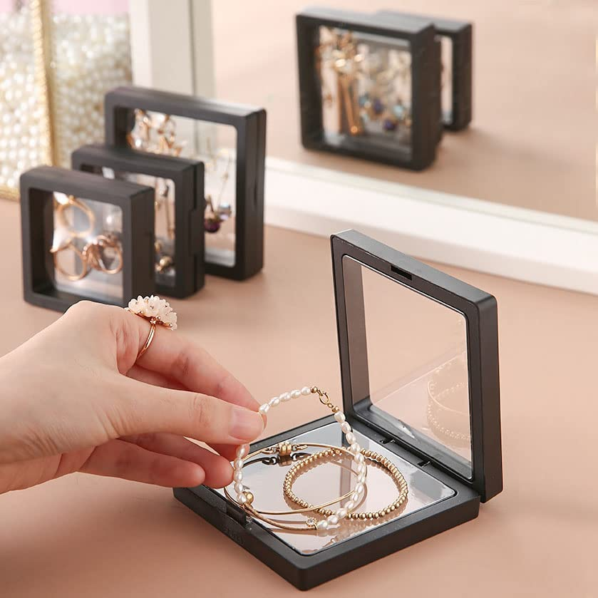 Warm reminder:Please check in store for other colors. This product should not be placed with sharp objects to prevent air leakage and reduce its antioxidant effect. There may be slight deformation after use. It can be repeatedly brewed with hot water in the open state. Do not operate it in the closed state as it may cause plastic film adhesion. If there are any quality issues, please contact us promptly. We are happy to serve you. PE film anti-oxidation: Highly resilient and non-breakable high transparent PE film, highly sealed to block air to prevent scratches and oxidation discoloration caused by open-air storage of jewelry. It is tough and can be used repeatedly. Even if the film is propped up and deformed, please wait for it to recover on its own, or you can use a hair dryer to remove the folds. Stackable and levitatable: The jewelry box is stackable to save you space, you can stack and arrange it in a drawer and the clear storage design allows you to find the jewelry you are looking for at a glance even in a crowded space. It can also stand up in your dresser or display case and is a great way to show off your precious items to friends, family and clients. Lightweight and compact: The jewelry case is lightweight and perfect for travel or everyday carry. With a thickness of only 0.74 inches, it can easily fit into your bag or luggage compartment, and the snap design allows the film to hold the accessories tightly without worrying about them getting tangled together. Applications: Suitable for displaying or collecting medals, badges, challenge coins, stamps, earrings, rings, necklaces, bracelets, jewelry, gemstones, nail patches, specimens and other souvenirs. Product Description Is there nowhere to place jewelry? A box with multiple uses, making storage no longer a problem SIZE Trumpet——2.75*2.75 External dimensions 2.75 * 2.75 inches Internal dimensions 2.15 * 2.15 inches Thickness 0.79 inches Medium ——3.54*3.54 External dimensions 3.54 * 3.54 inches Internal dimensions 2.95 * 2.95 inches Thickness 0.79 inches Large——4.33*4.33 External dimensions 4.33 * 4.33 inches Internal dimensions 3.74 * 3.74 inches Thickness 0.79 inches Snap design Smooth switch Dustproof and anti-oxidation Glossy rounded edges More secure in use Highly flexible PE film High toughness can be used repeatedly Small size, big energy High resilience does not break easily
