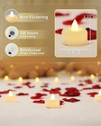 DIY TEALIGHTS CANDLE: The flat tea lights candle edge is perfect for DIY. You can place your favorite decorations, write warm blessings, and draw the patterns you want. Warm white light LED tealight candles better simulate real tealight candles 12PACK SET: 1.41"W x 1.37"H battery tea lights candles(Battery pre-installed) can be the perfect replacement for traditional candles used at home, avoiding the fire hazards of traditional candles, do not worry about candles being blown out by the wind 100 HOURS LED CANDLES: Battery powered candles last 20 times as long as the traditional wax tea lights, you can also replace the battery of the flameless candle by opening the battery cover. AG10 Coin Batteries are small parts, Not for children under 3 yrs ADD ATMOSPHERE: These LED flameless tealight candles can be placed on the dining table or in the room to add a warm atmosphere, electric tealight candles can also be decorations during weddings, proposals, Halloween, Christmas, Holidays, or important occasions SIMPLICITY DESIGN: You only need to gently flip the switch at the bottom to control the working state of flameless candles. Flameless tea light candles are now available in different quantities of 12/24/50/100/150 packaging, which can be selected according to your needs