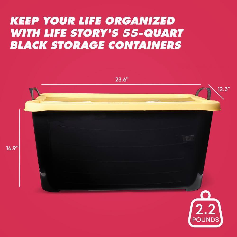 12 Qt Black Plastic Storage Bins With Lids - 6-Pack