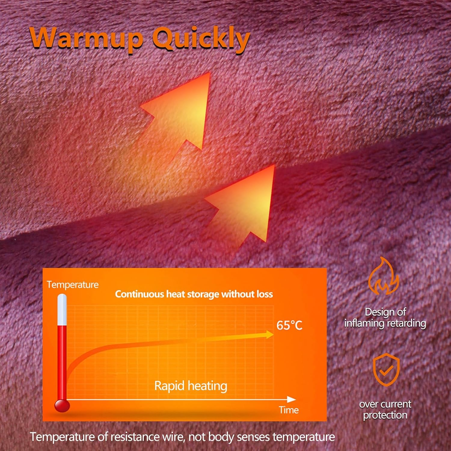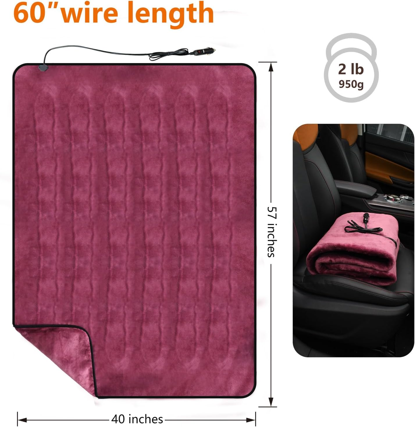 Universal Fit:12v car heated blanket fits various 12V cars, SUV, Trucks.Comes with 72" cable,even passengers in the backseat can stay cozy on cold winter with this heated flannel throw Fast Heating:The 55*40 inches electric blanket can heat up quickly during heating. Instantly warm to keep you warm in the coldest weather Over Heating Protection:When the temperature of electric car heating blanket exceeds 104 degrees Fahrenheit, the switch will be automatically turned off, in case you forget to turn it off during using Soft Material - Car heated blanket is made from premium flannel material to provide long-lasting coziness. You can wipe it with damp cloth in dirty area when you needed,Don't machine wash it. Great Gift:This heated blanket for car is the perfect winter travel and camping accessory for adventurous people. It's great for vehicle emergency kits, RVs,providing a thoughtful gift for your friends and family this cold weather Great Service:If you have problems in the process of using, you can tell us, we will be happy to help you solve Product Description