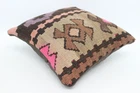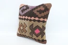 12"x12" Brown Pillow Cover, Turkish Kilim Pillow, Vintage Kilim Throw Pillow