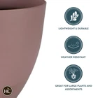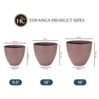 The Topanga Planters combine a soothing matte palette and gently curved profile with a sophisticated glossy swoop at the base. This beautiful resin flower pot has the look of glazed pottery without the fragility. These containers are very durable and lightweight. Made from a weather-resistant resin, these pots won't fade in the sun, they won't crack, and they won't leak for long lasting use. Great for performing indoor or outdoor container gardening on your patio, porch, or deck. SOPHISTICATED DESIGN – These plant pots combine a soothing matte palette and gently curved profile with a sophisticated glossy swoop at the base. The perfect complement to almost any indoor or outdoor space. DURABLE & LIGHTWEIGHT – Made from a high-quality, lightweight resin, these garden pots have the look of glazed pottery without the heavy weight or fragility. WEATHER-RESISTANT – These decorative planters are UV resistant and will not crack or color-fade over time. Comes without drainage holes. However, if needed, holes can easily be drilled in the bottom of the planter. GREAT FOR A VARIETY OF PLANTS - These round planters come in several sizes and are great for indoor houseplants, as well as outdoor gardening on your patio, porch or deck. Use them to grow vegetables, flowers, herbs, snake plants and more. DIMENSIONS - 13"X13"X11.7"