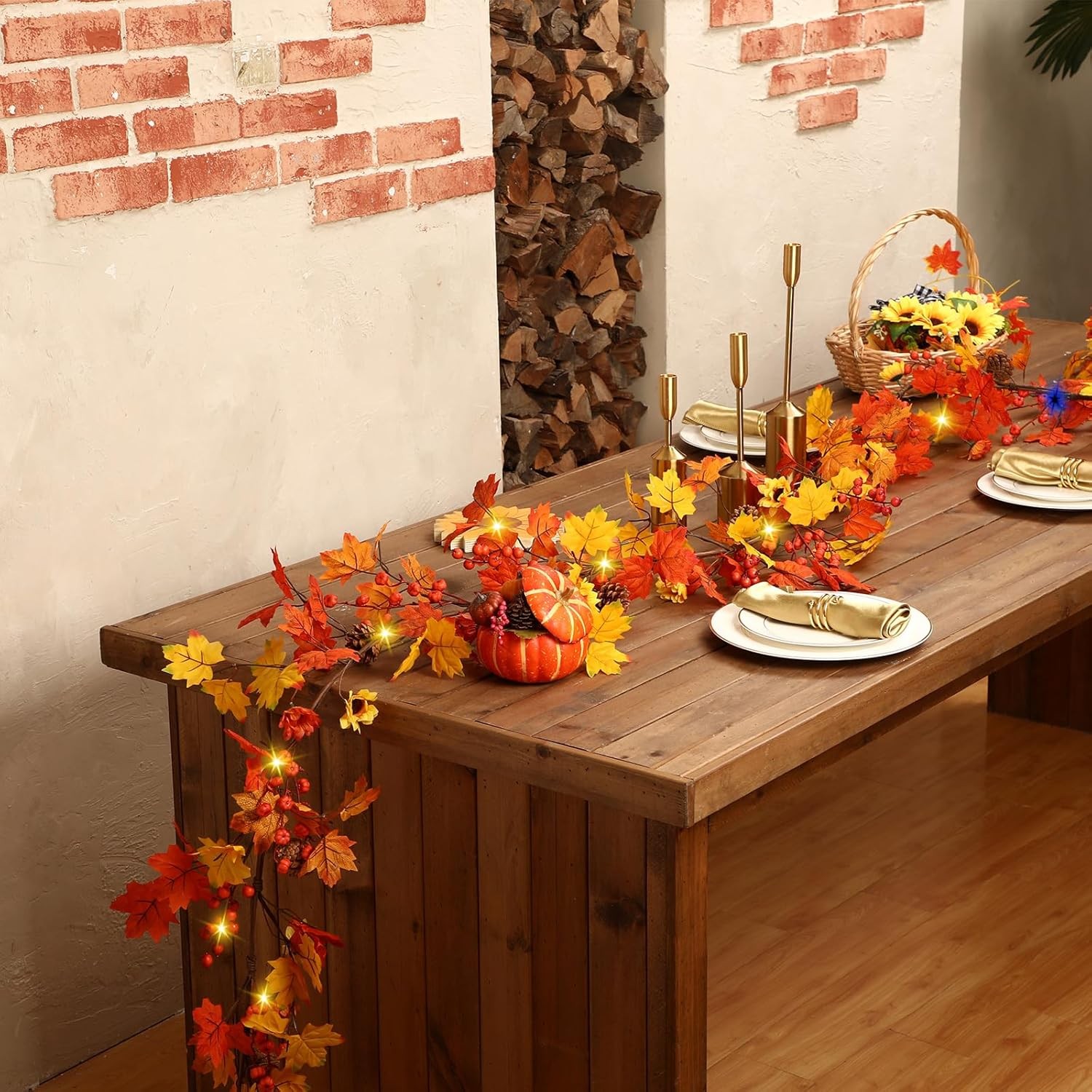 Jutom Fall Decor 13.2 ft Garland with 50 Lights Autumn Maple Leaf Orange LuxeFusion Product Description Features: Nice for the autumn and especially befitting for Thanksgiving, this garland is a warm, inviting touch to any room. As an autumn thanksgiving garland, it delivers a rich, full, and quality look to complement the occasion. This isn't just a typical fall garland but a piece coupled with twinkling lights. The lights intertwined among the leaves bring a magical, warm glimmer to your decor, turning your space into an autumn spectacle everyone will adore. Specifications: Color: orange Size: 13.2 ft / 4mPackage includes: 1 x fall garland with lightsNotes: Manual measurement, please allow slight errors on size. The color may exist a slight difference due to different screen displays. Features Package Content: each package includes a fall garland with lights; This is a 13.2 ft autumn garland adorned with sunflower, pine cones, and a variety of leaves; Just arrange it as you please and let the festivity envelop your home Realistic Maple Leaves: the quality of our festive garland is top notch, made from materials that are carefully Choose; Additionally, the pumpkins and pine cones are firmly attached ensuring they won't fall, giving you a product you can rely on; This fake fall garland in autumn provides ample length for winding around columns, draping over doorways Brilliant Autumn Colors: the mix of autumnal elements makes this garland the ideal accent for fall home decor; The stunning color blend epitomizes the essence of fall, adding a heartwarming touch to your home Versatile Thanksgiving Decor: this versatile Thanksgiving autumn garland is nice for an array of uses including as a fall wedding arch, door decor, mantelpiece, and even for Thanksgiving and Halloween decorations; You can also incorporate it into your garden decor, table centerpiece, swings, and stair railings Warm Tips: due to the journey, the garland may arrive slightly crushed or deformed; However, you can effortlessly restore it to its original form simply by using a hairdryer Product Details Is Artificial Garland: Yes Is Lighted: Yes Shape: Rectangular Manufacturer: Jutom Item Weight: 2.1 pounds Package Dimensions: 13.23 x 12.6 x 3.7 inches Country of Origin: China Brand: Jutom Color: Orange Material: Resin, Plastic Item Length: 13.2 Feet Plant or Animal Product Type: Maple, Sunflower, Pine Cone Free Shipping All orders ship free and fast to your doorstep. Easy Returns Satisfaction guaranteed. 30-day returns, no questions asked. 24/7 Support Contact us anytime; we’re here to help, day or night. Brought to you by LuxeFusion – Quality you can trust.